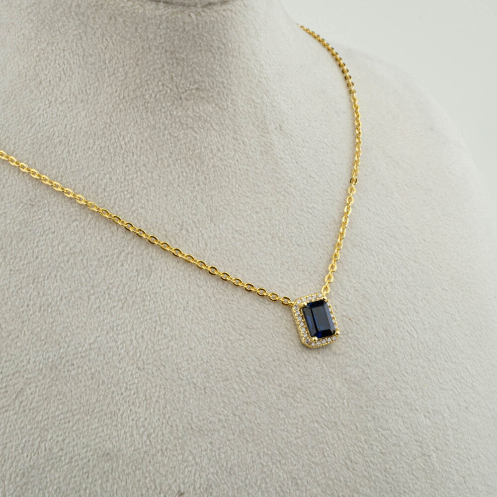 Safir Doğal Taş 925 Ayar Gümüş Gold Kolye