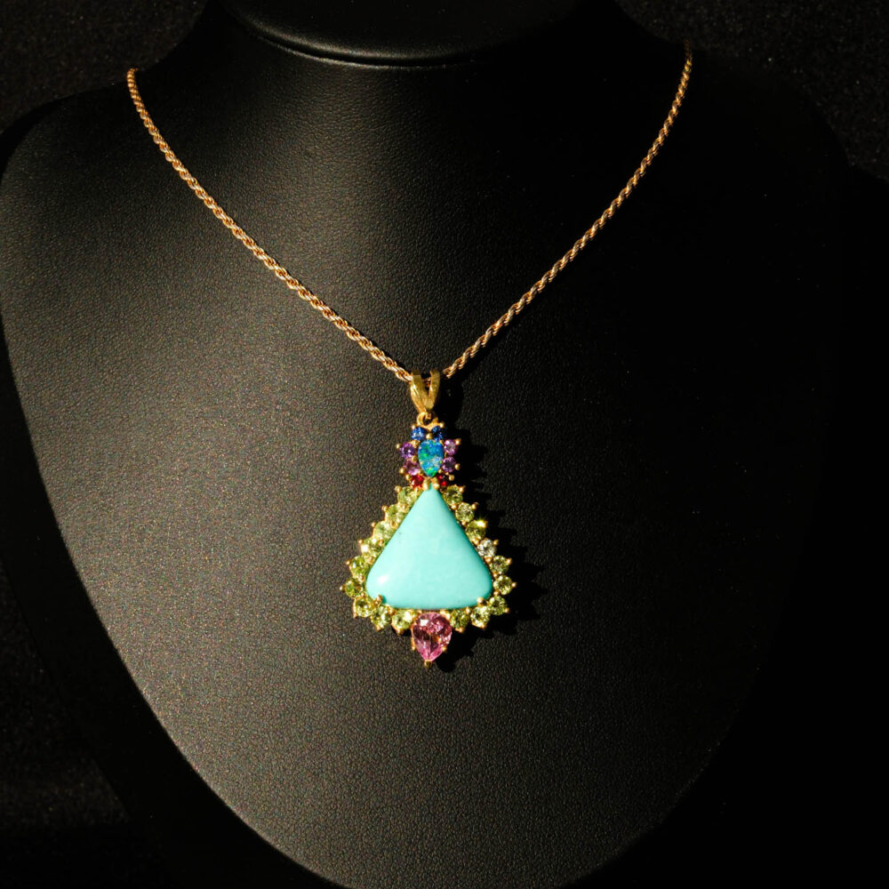 Orijinal Turkuaz (Firuze), Safir, Ametist, Zebercet, Opal Taşı 925 Ayar Gümüş Tasarımlı Kolye