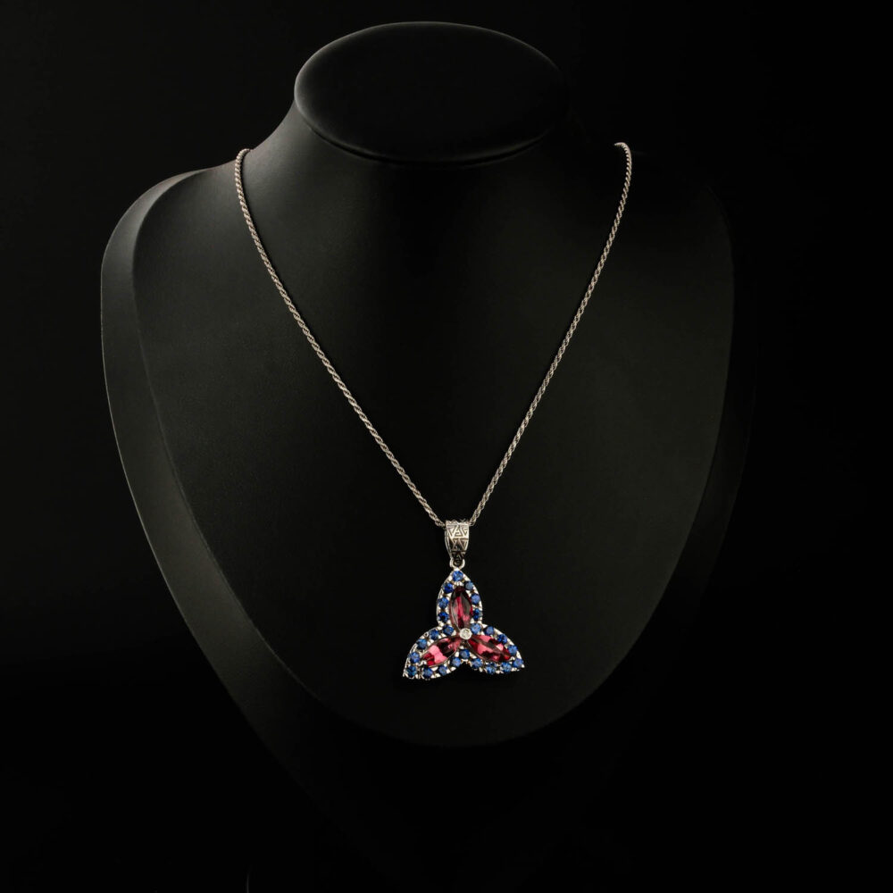 Özel Tasarım Orijinal Safir, Turmalin ve Pırlanta Süslemeli 925 Ayar Gümüş Kolye