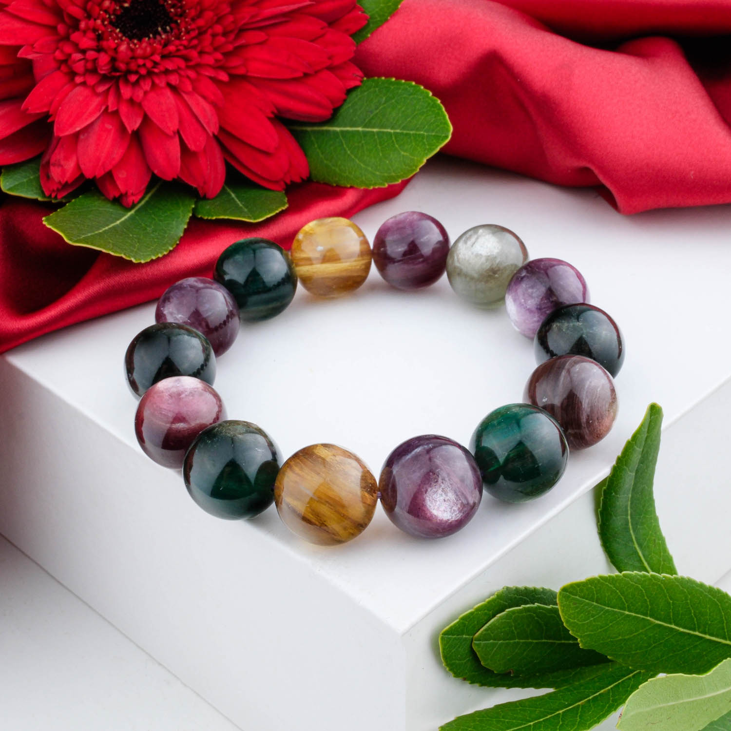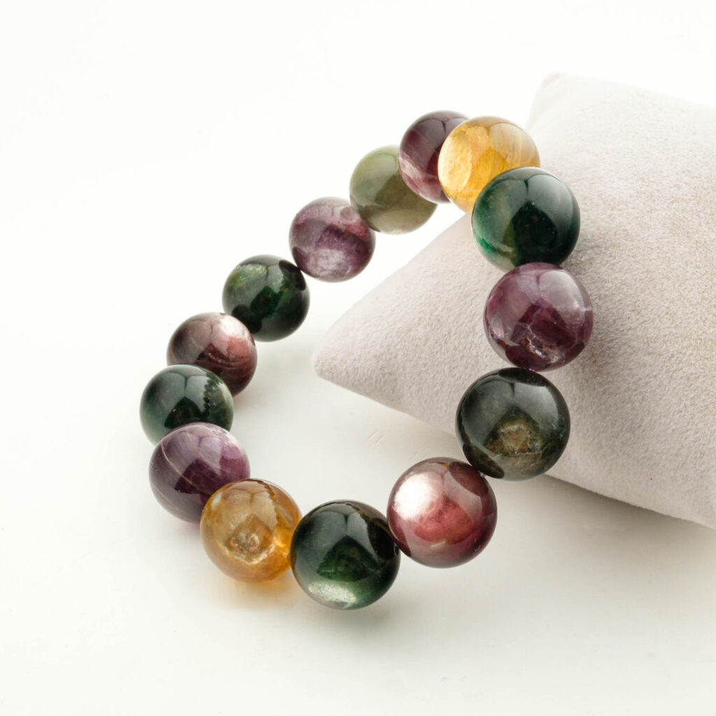 5A+Kalite Özel Renkli Lepidolit Doğal Taş Bileklik (15-16mm)
