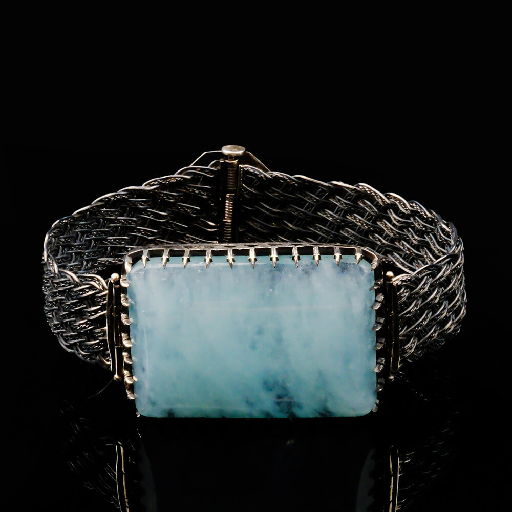 El yapımı Akuamarin taşı ile yapılmış 925 ayar gümüş hasır örme bileklik modelimiz.
