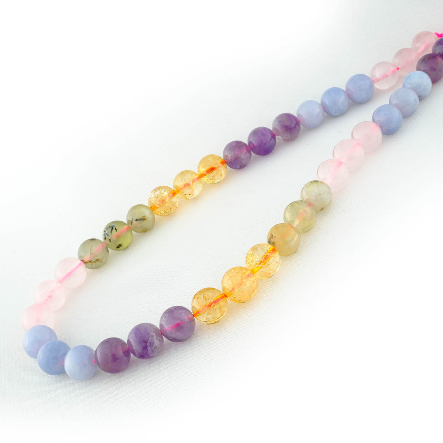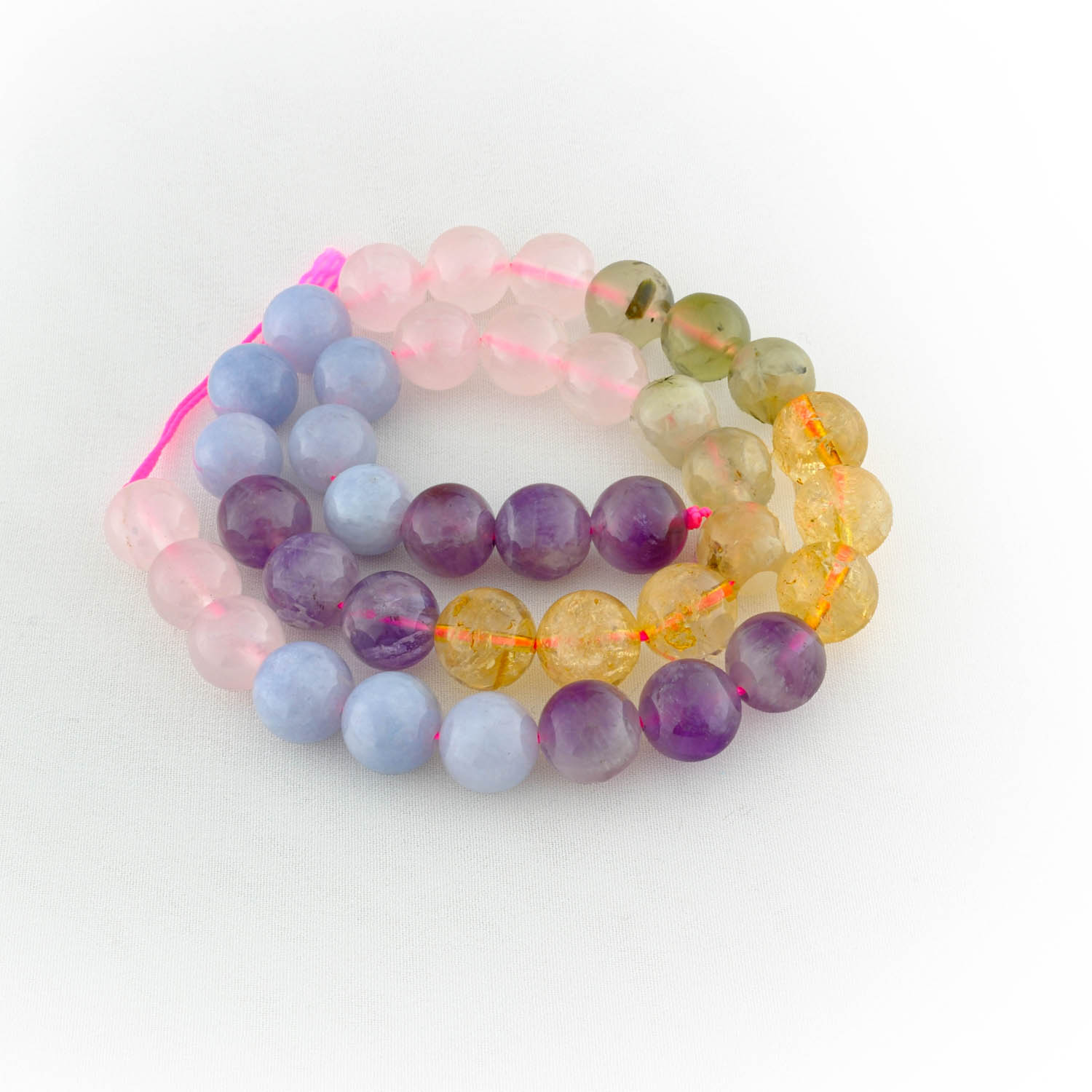 Çakra (Pembe Kuvars, Akuamarin, Prenhite, Sitrin ve Ametist) Doğal Taş Dizi (10mm)