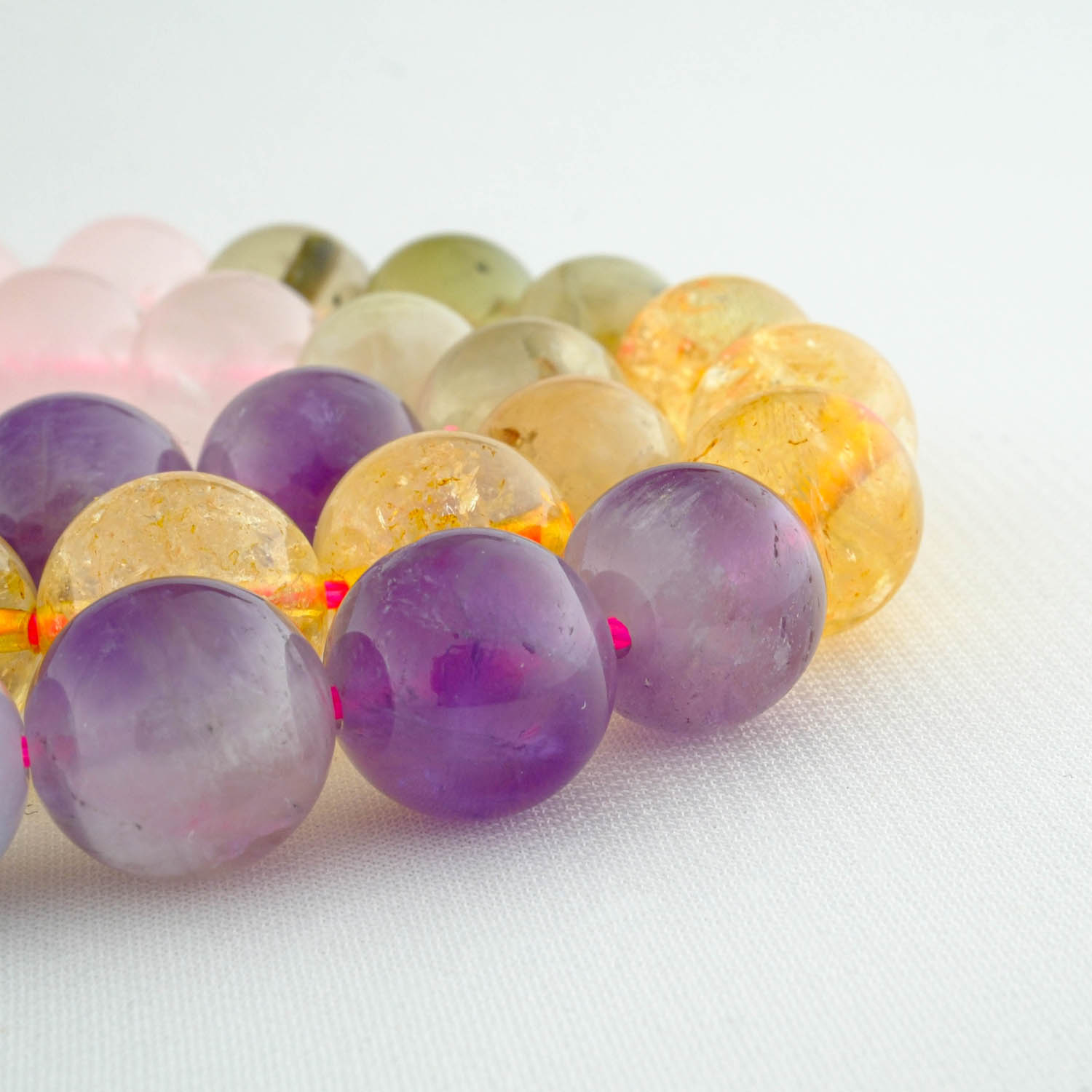 Pembe Kuvars, Akuamarin, Prenhite, Sitrin ve Ametist Doğal Taş Dizisi