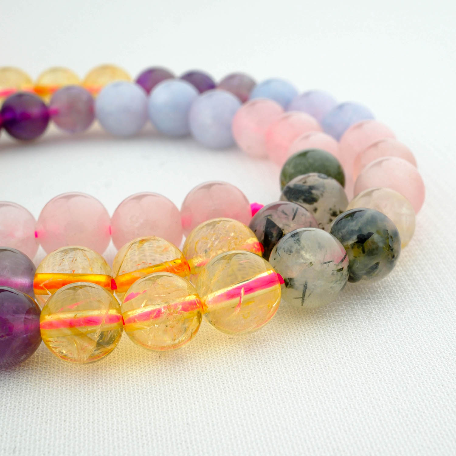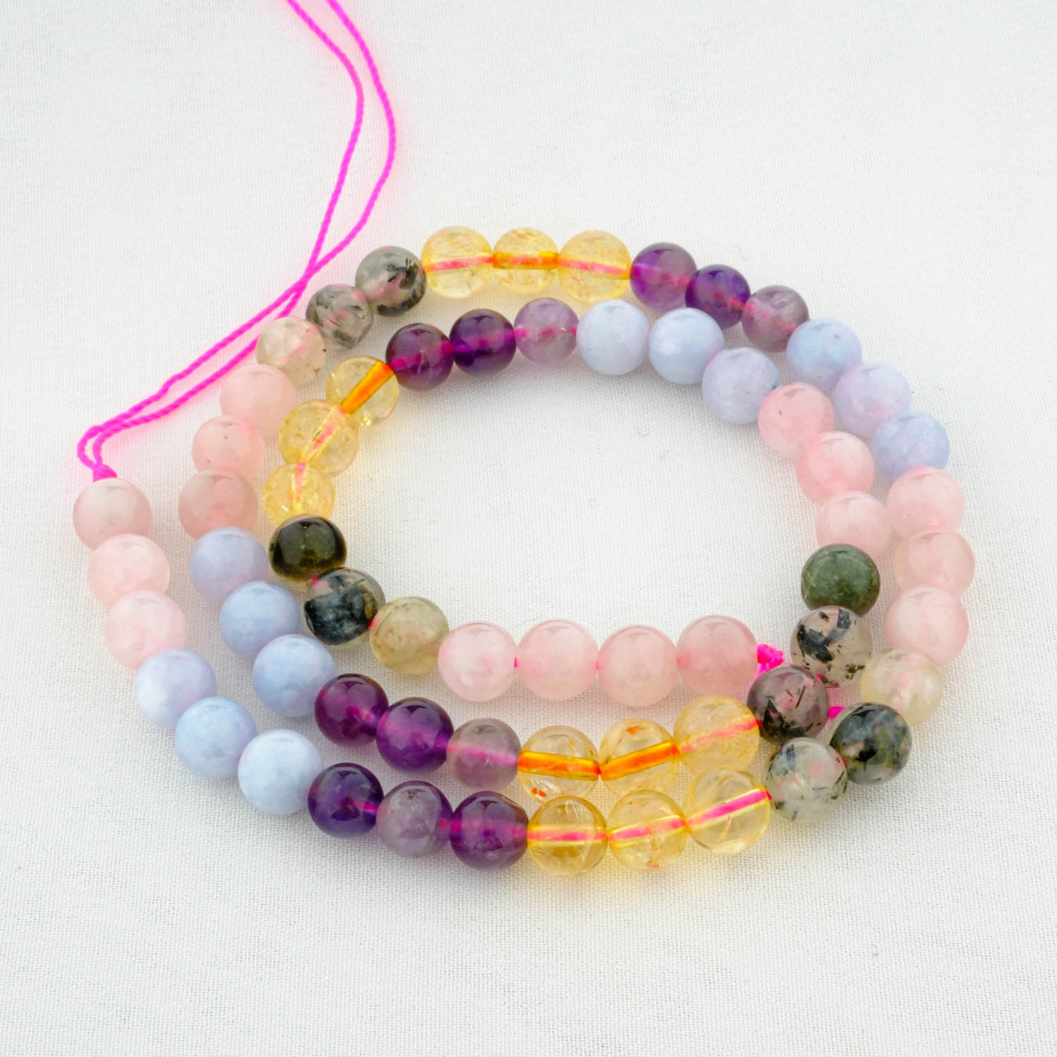 Pembe Kuvars, Akuamarin, Prenhite, Sitrin ve Ametist Doğal Taş Dizisi