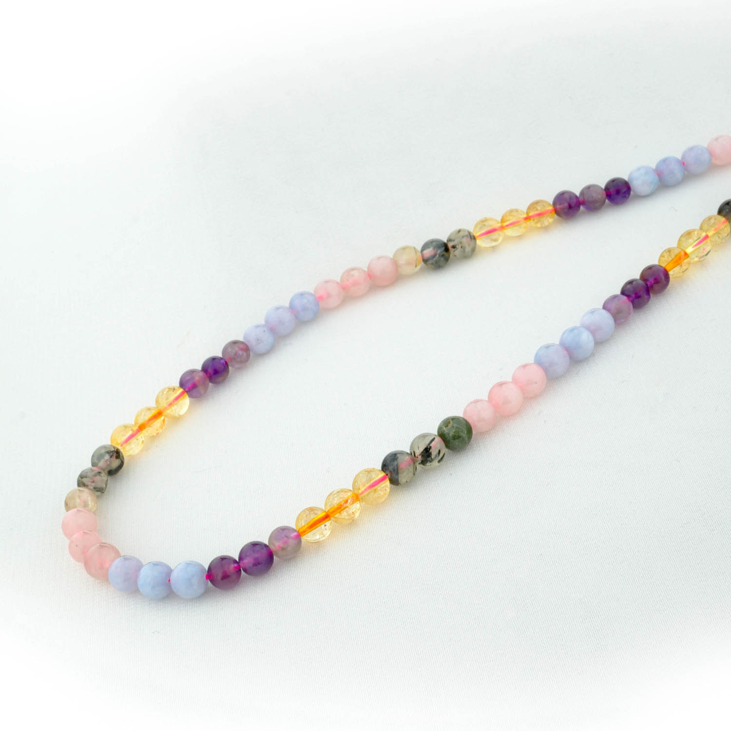 Bu doğal taşlar dizildiğinde, bedensel ve ruhsal dengeyi sağlamaya yardımcı olur. Pembe kuvars, sevgi ve barış yayarken; akuamarin ve prenhite, zihni sakinleştirip sezgileri artırır. Sitrin, enerjiyi yükseltirken, ametist ise ruhsal koruma ve stres azaltmada etkilidir.