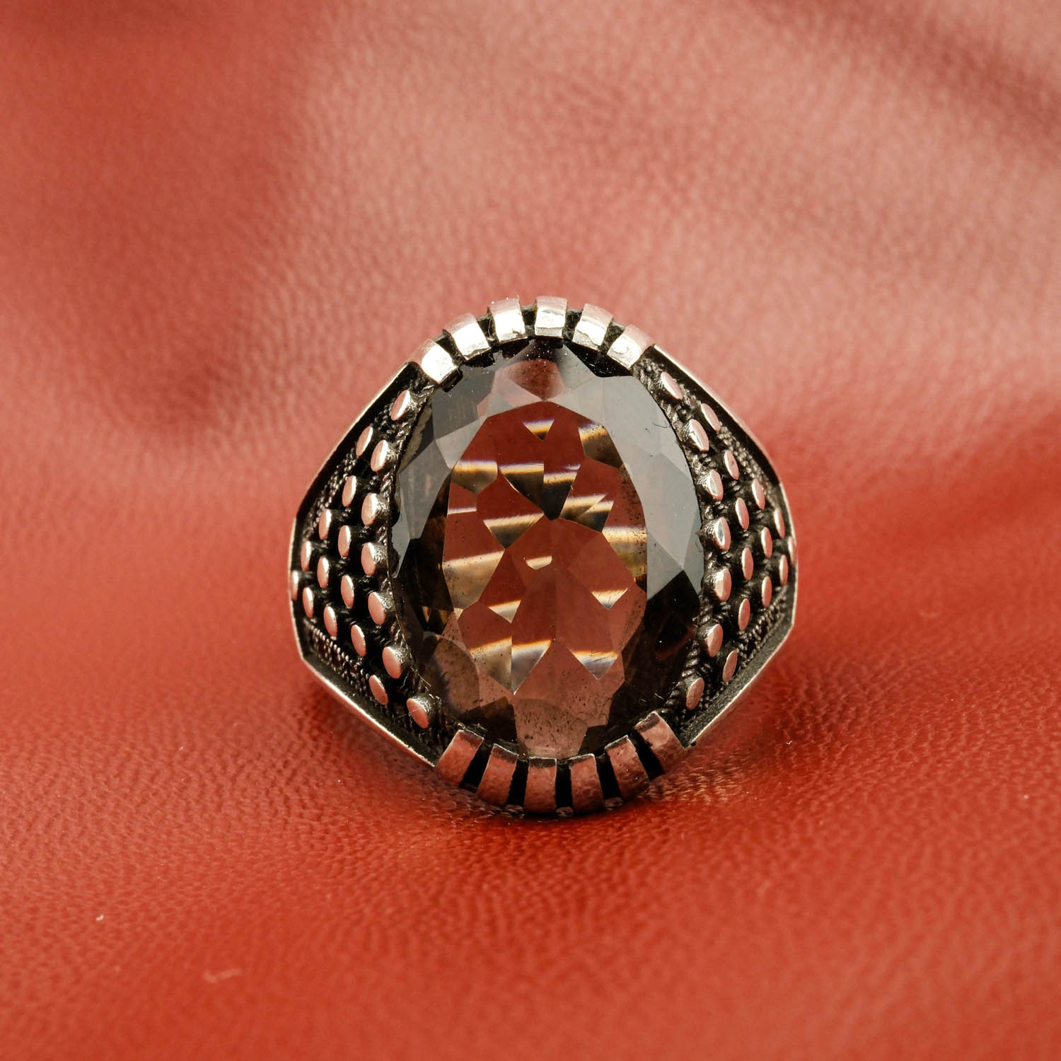 Dumanlı kuvars taşı 925 ayar gümüş tasarımlı Erkek yüzük modelimiz.