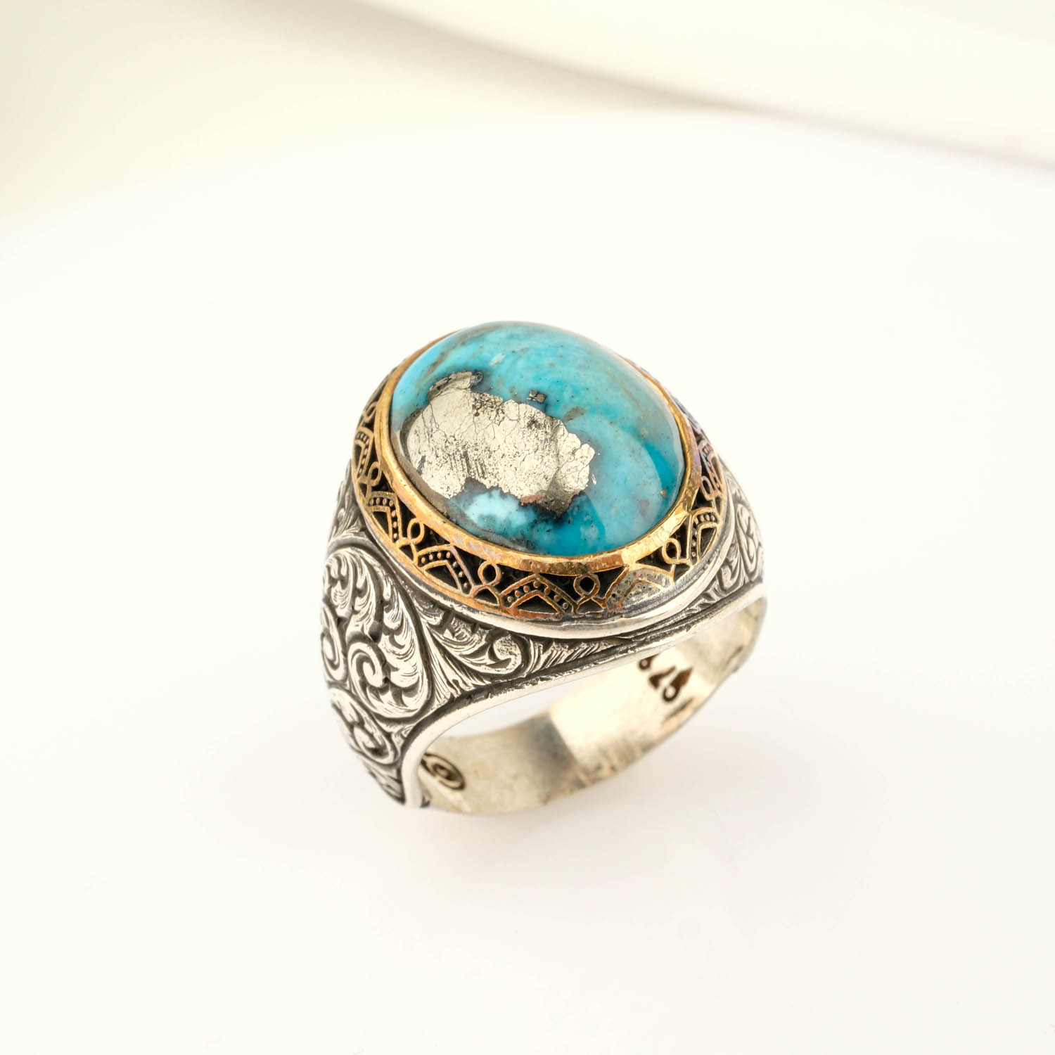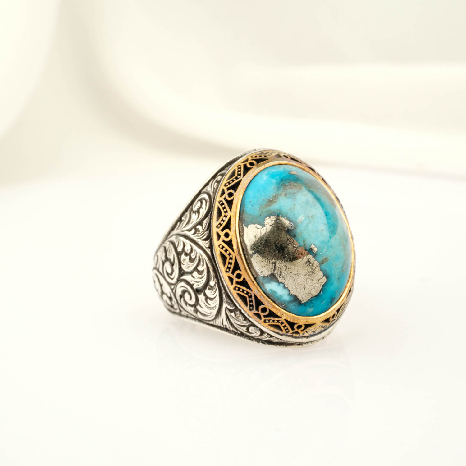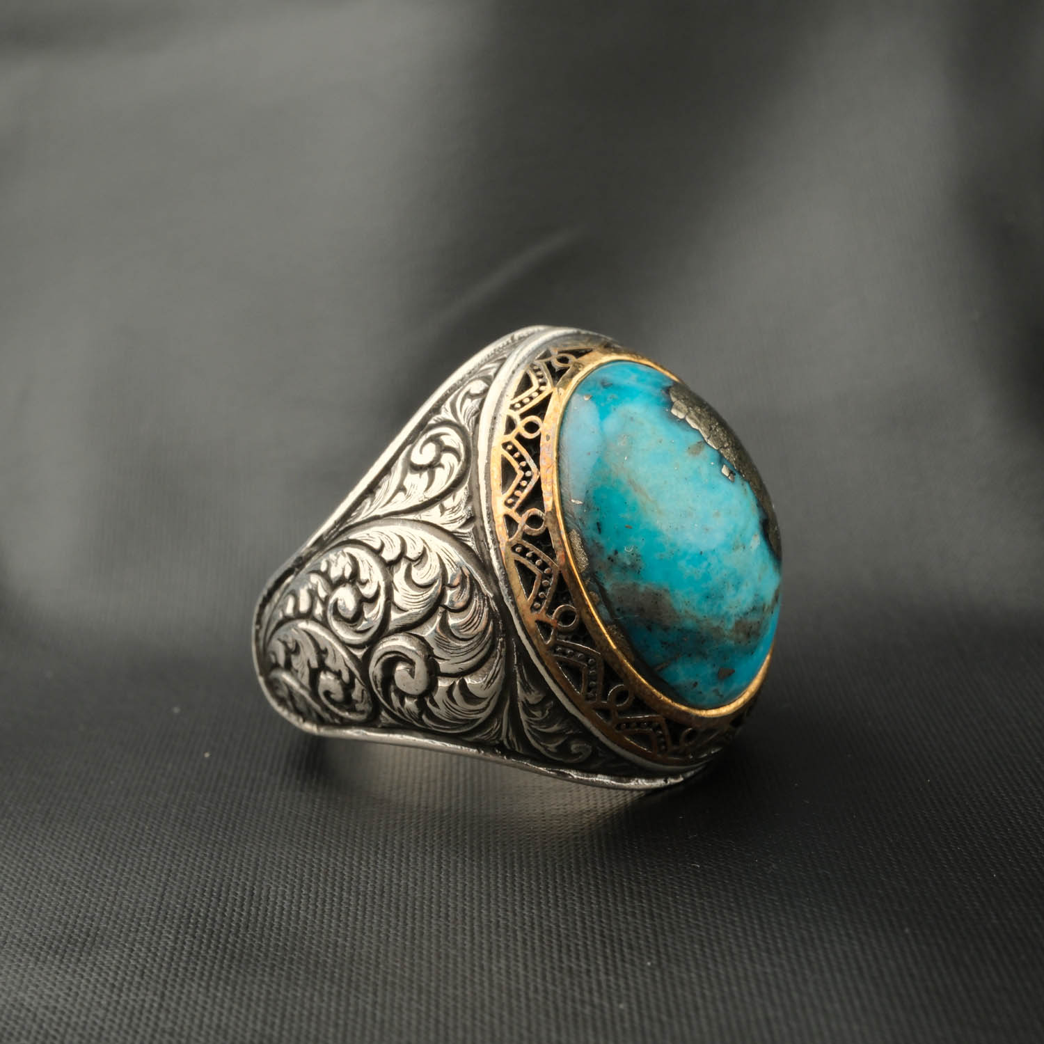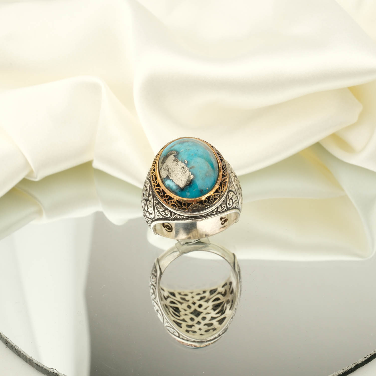 İran Turkuaz (Firuze) Taşı 925 Ayar Gümüş Tasarımlı Yüzük Modelimiz.