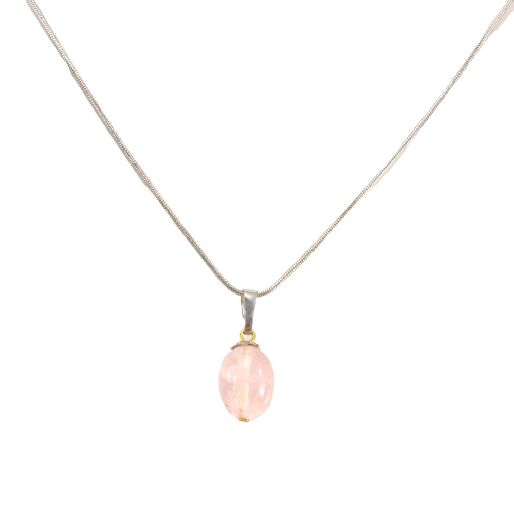 Pembe Kuvars Doğal Taş Metal Kolye (Küçük)