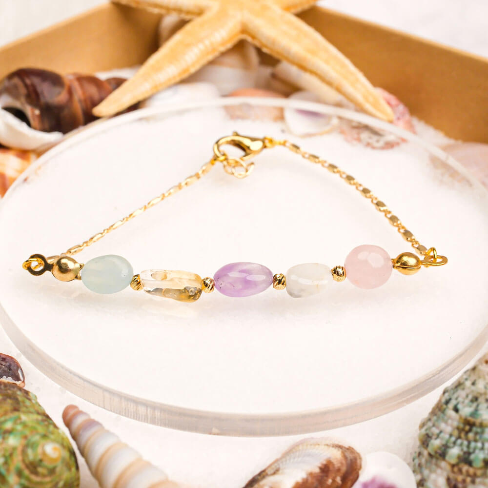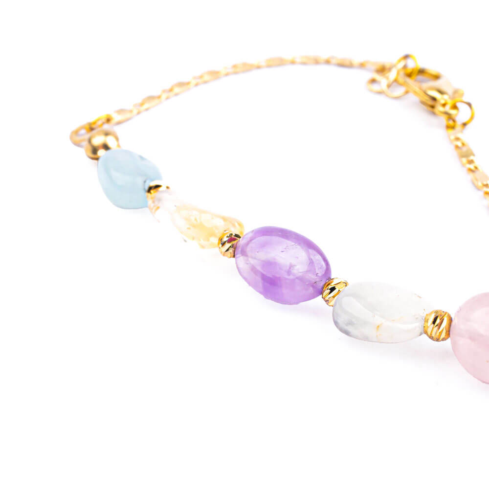 Pembe Kuvars, Ametist, Akuamarin ve Sitrin taşı ile yapılmış çelik bileklik modelimiz.