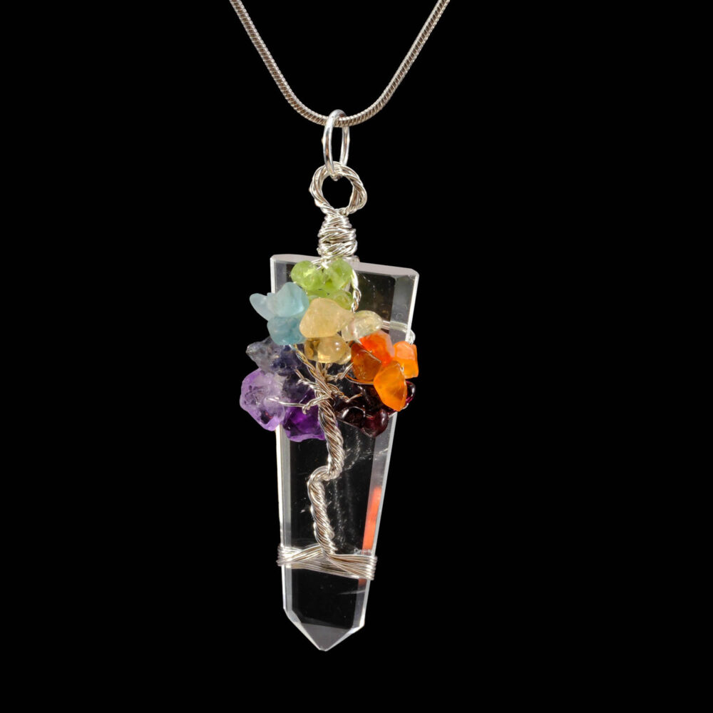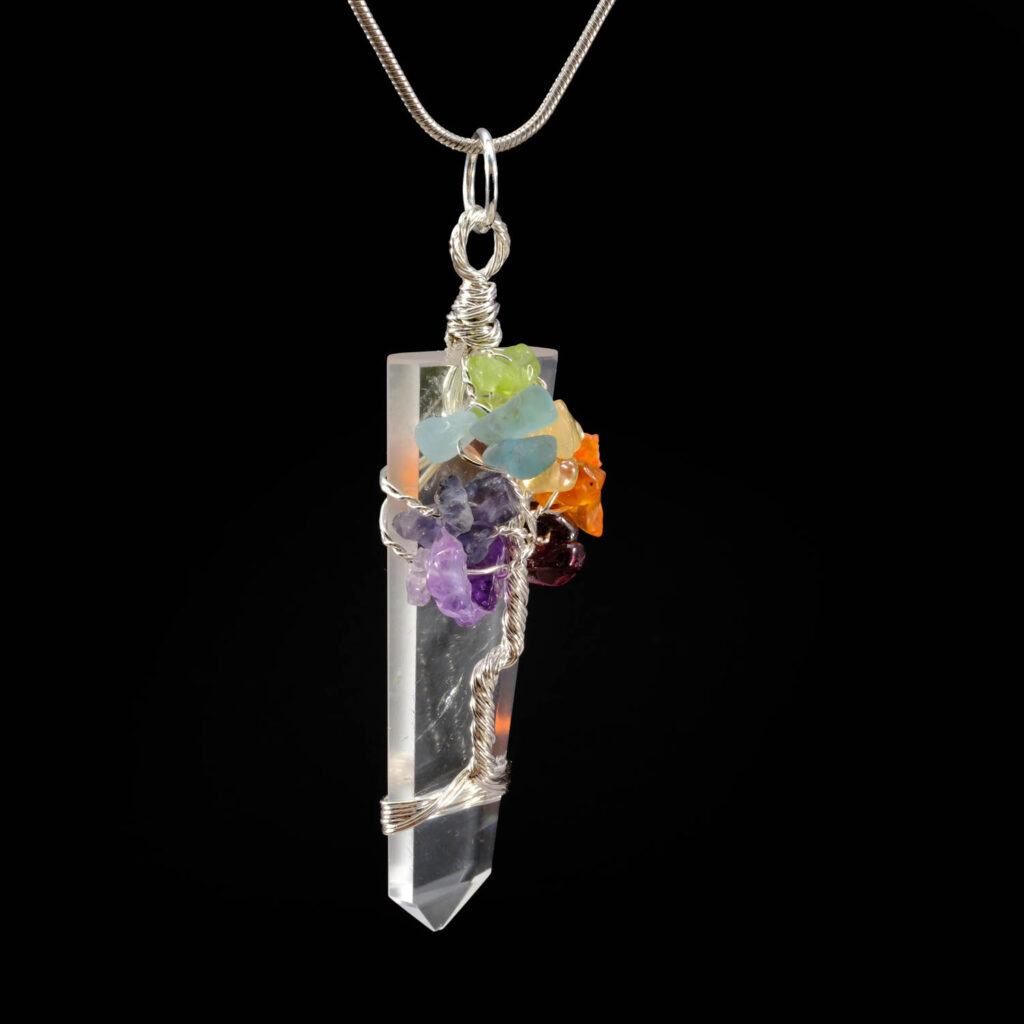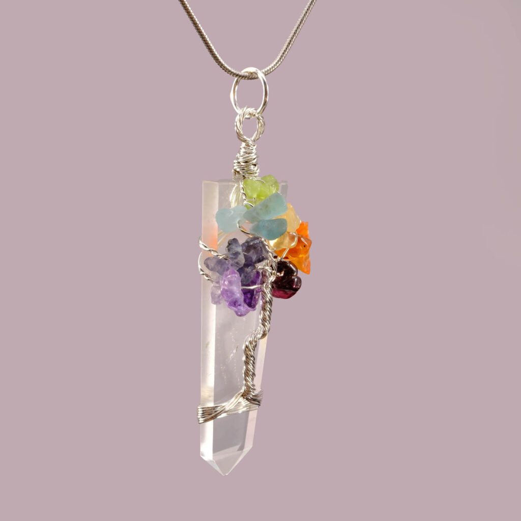 Kristal Kuvars Çakra Doğal Taş Metal Kolye