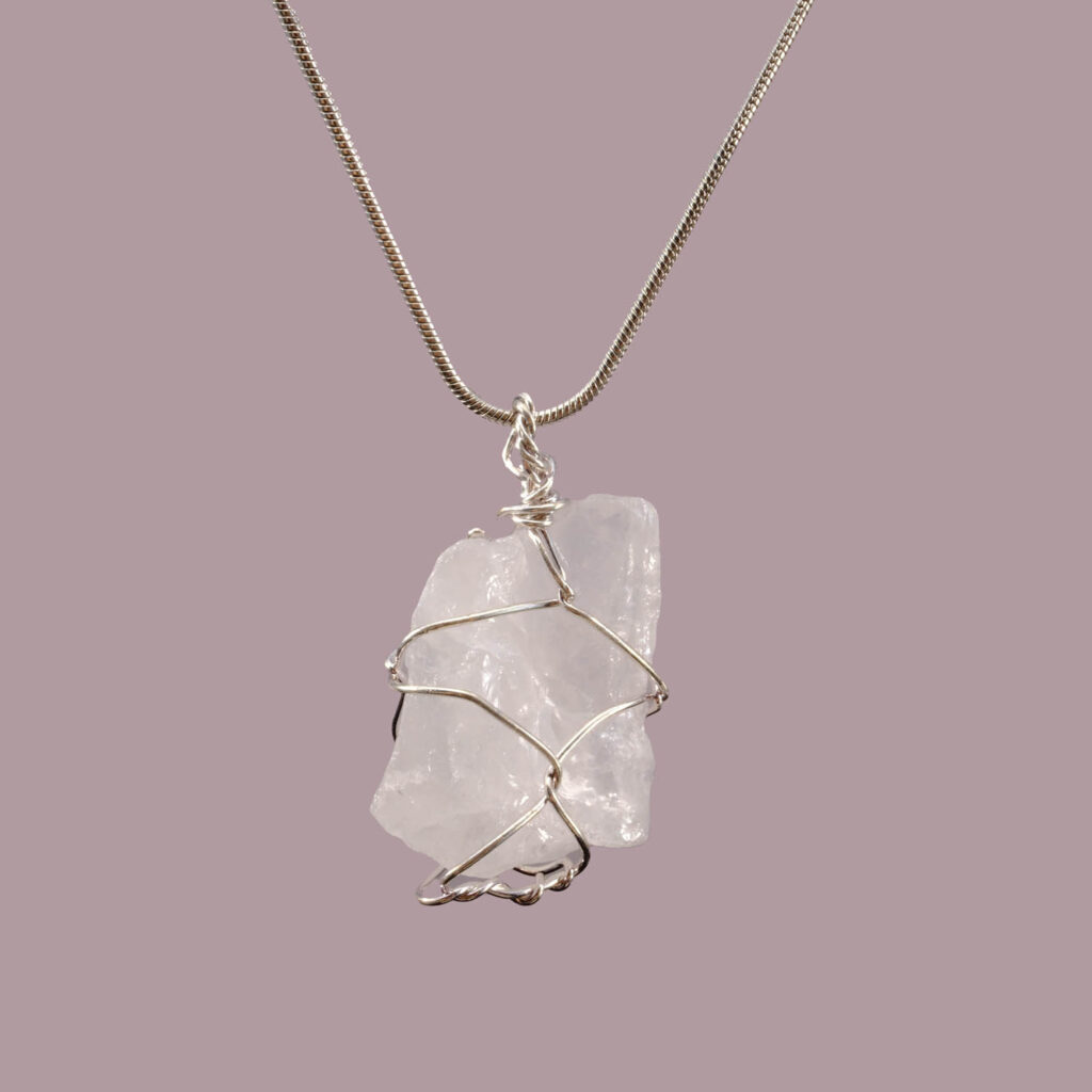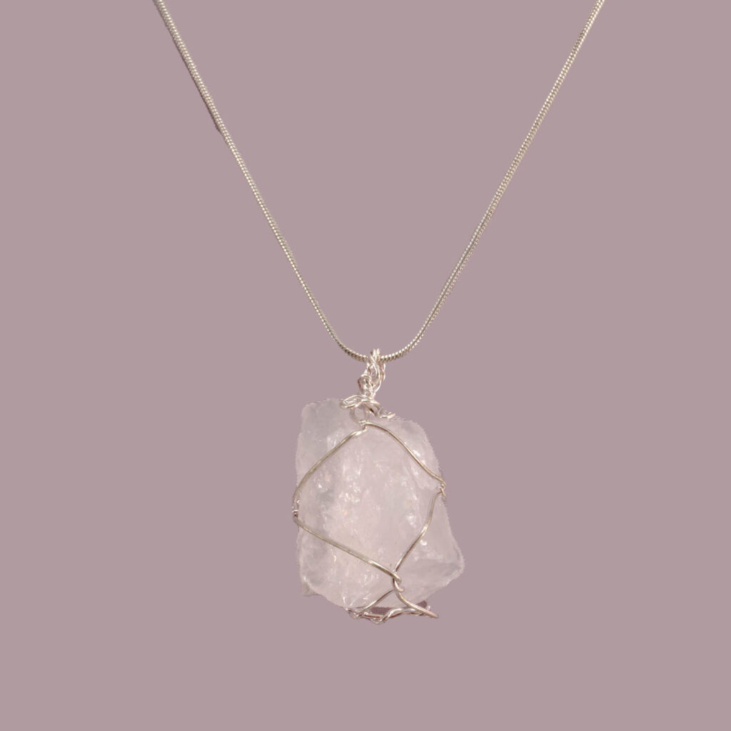 Kristal Kuvars Çakra Doğal Taş Metal Kolye