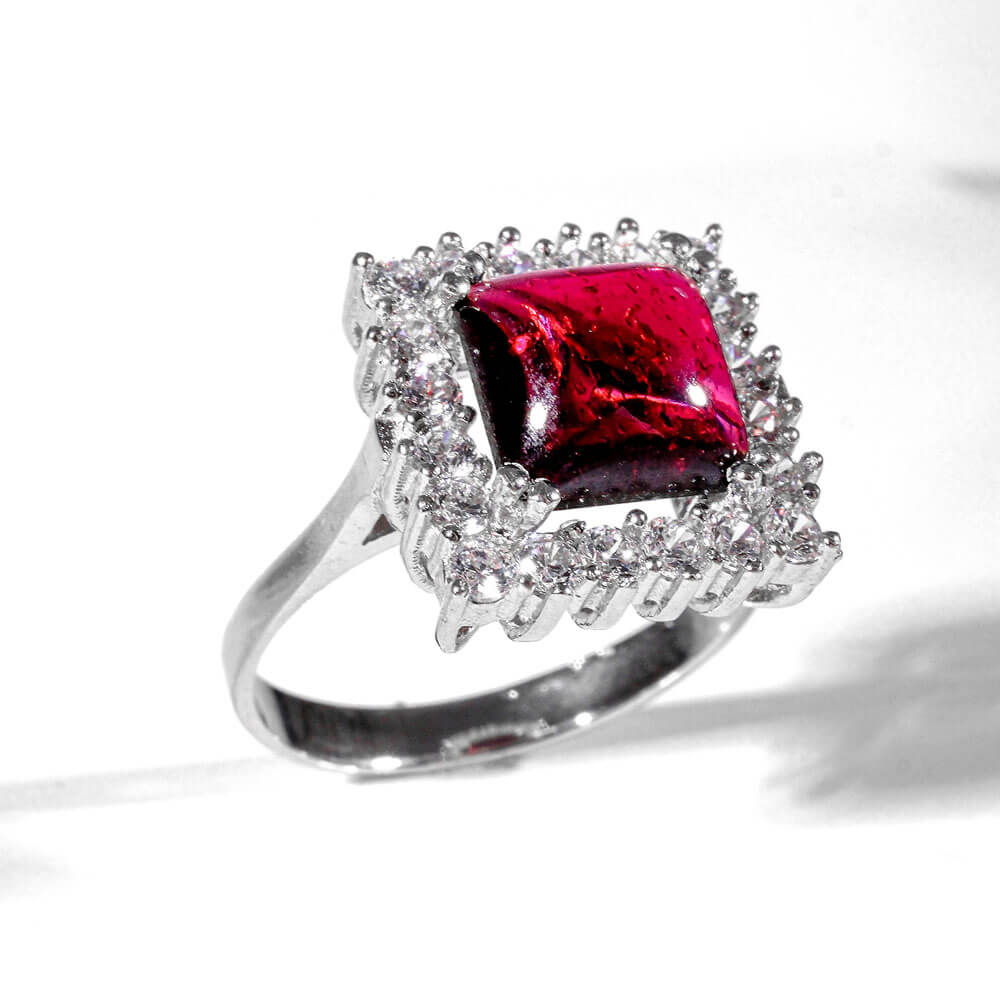 Lal (Garnet) taşı 925 ayar gümüş tasarımlı bayan yüzük modelimiz.