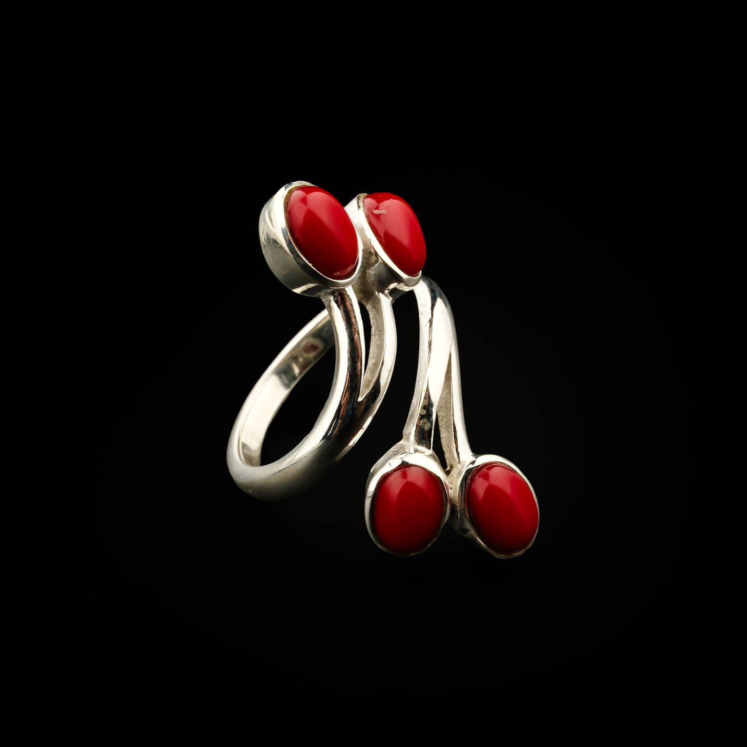 Mercan Taşı 925 Ayar Gümüş Bayan Yüzük