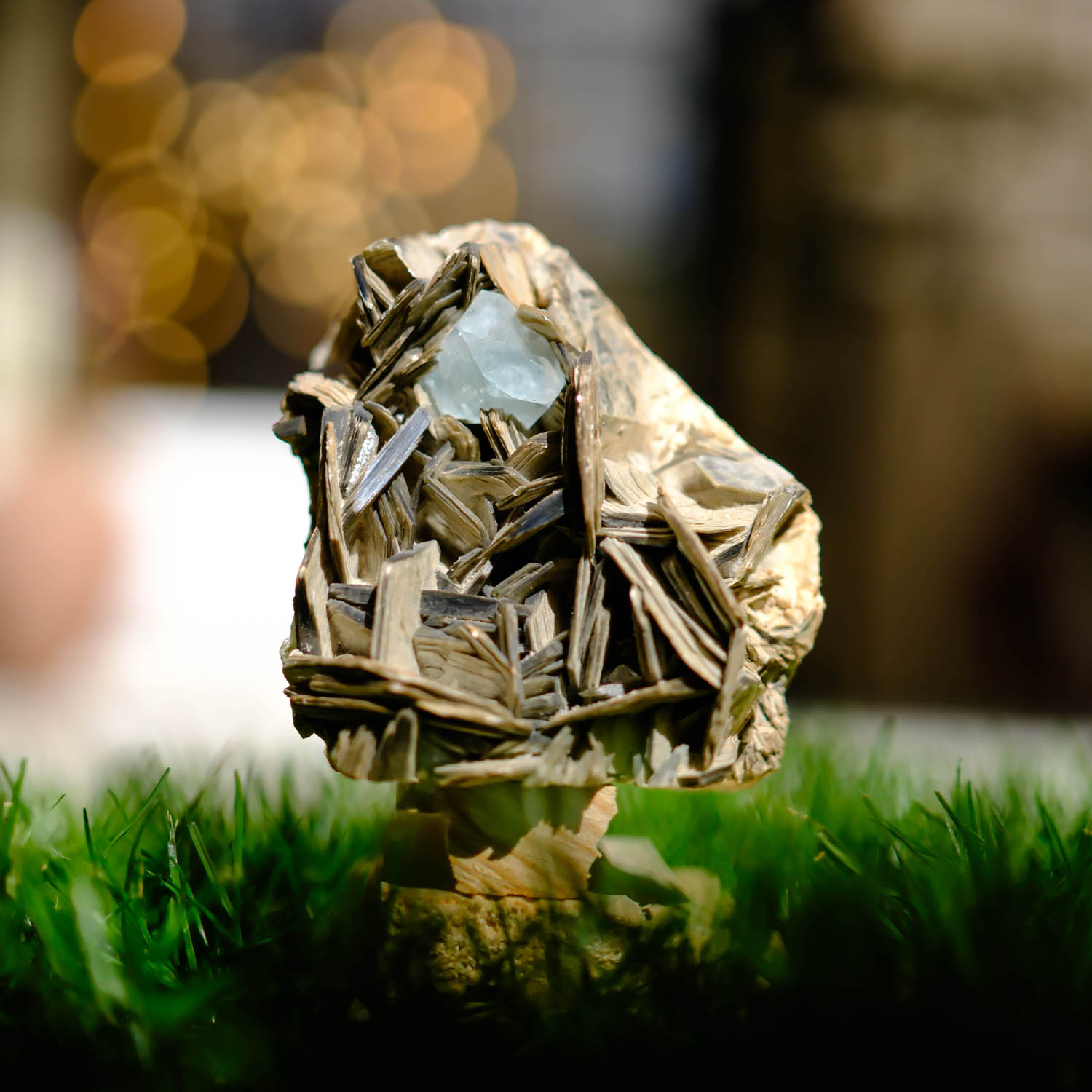 Muskovit Oluşumlu Akuamarin Doğal Taş Ham Parça