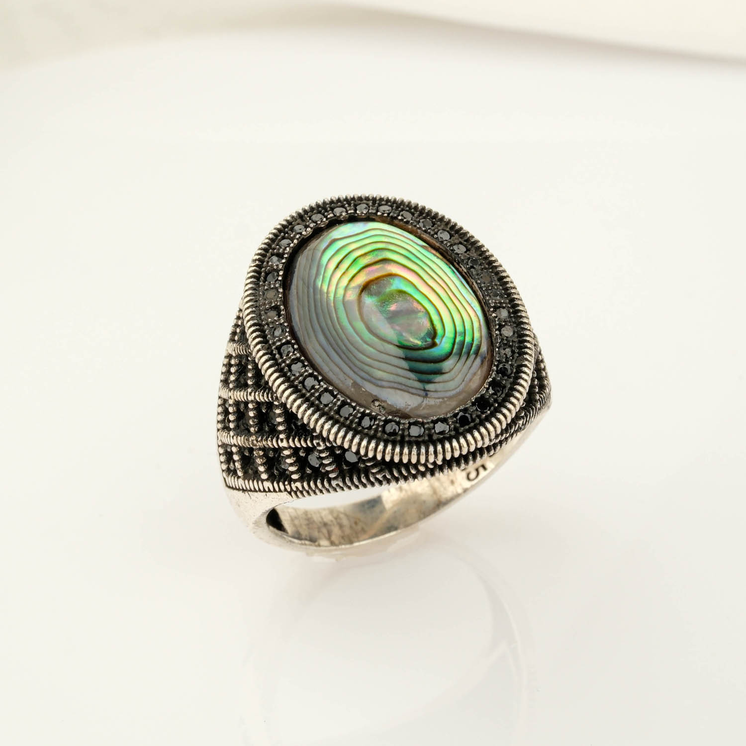 Okyanus Sedef Doğal Taş Gümüş Erkek Yüzük
