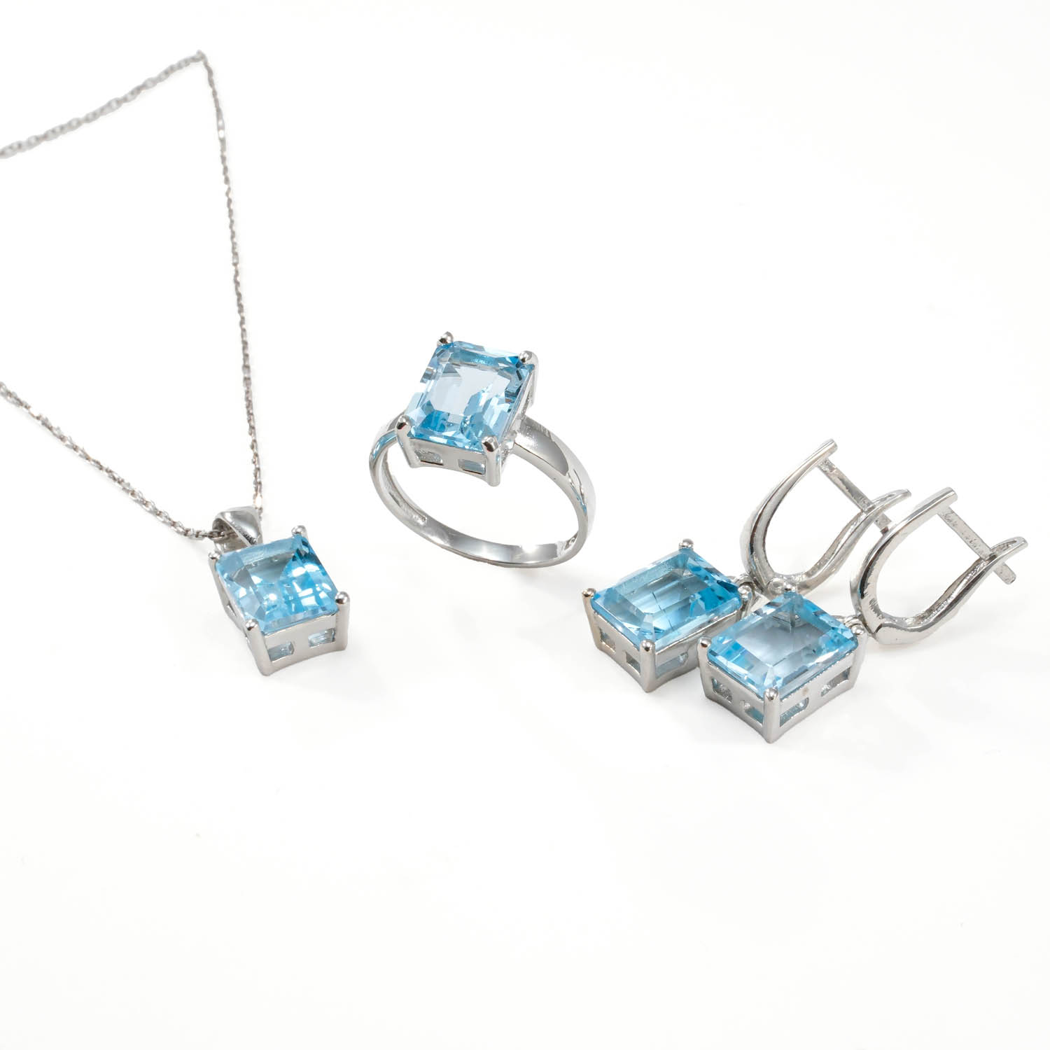 Orijinal Blue Topaz Doğal Taş Gümüş Set
