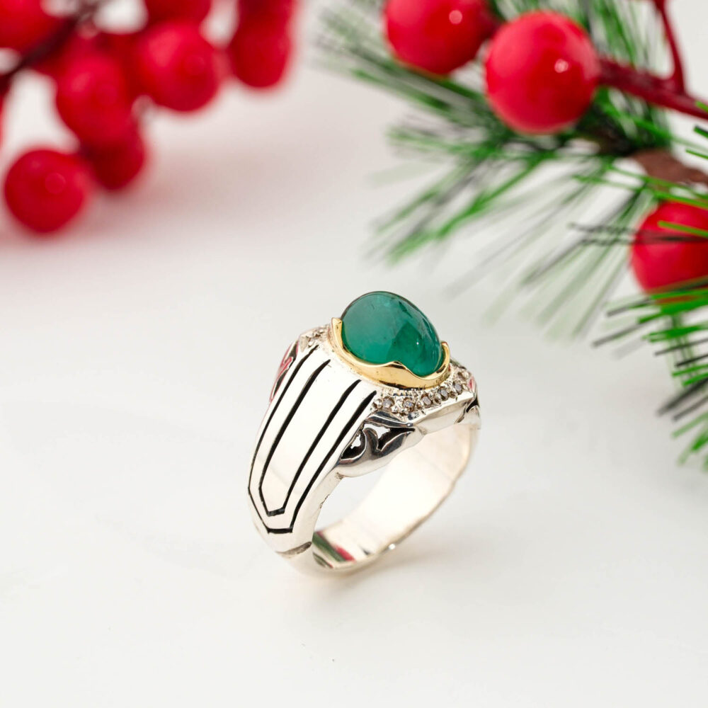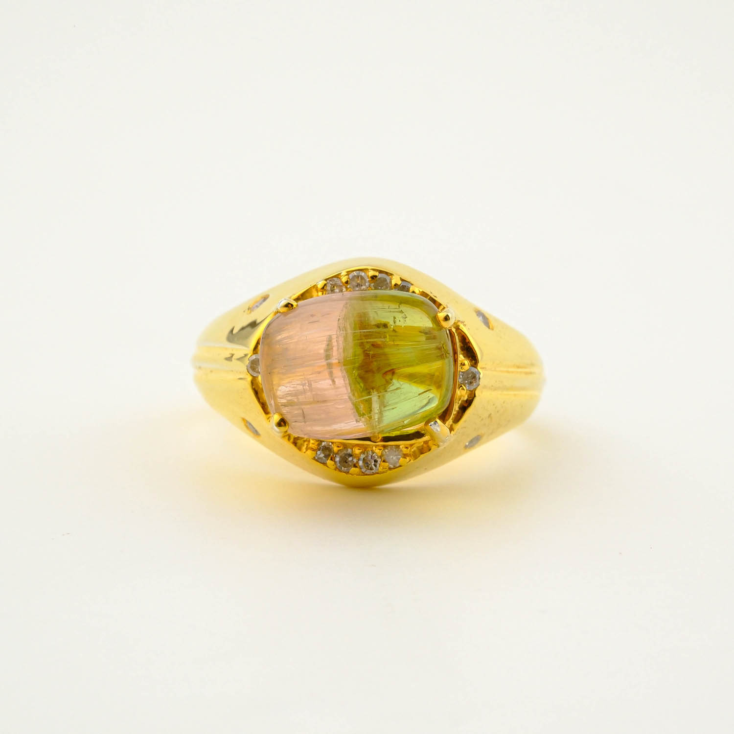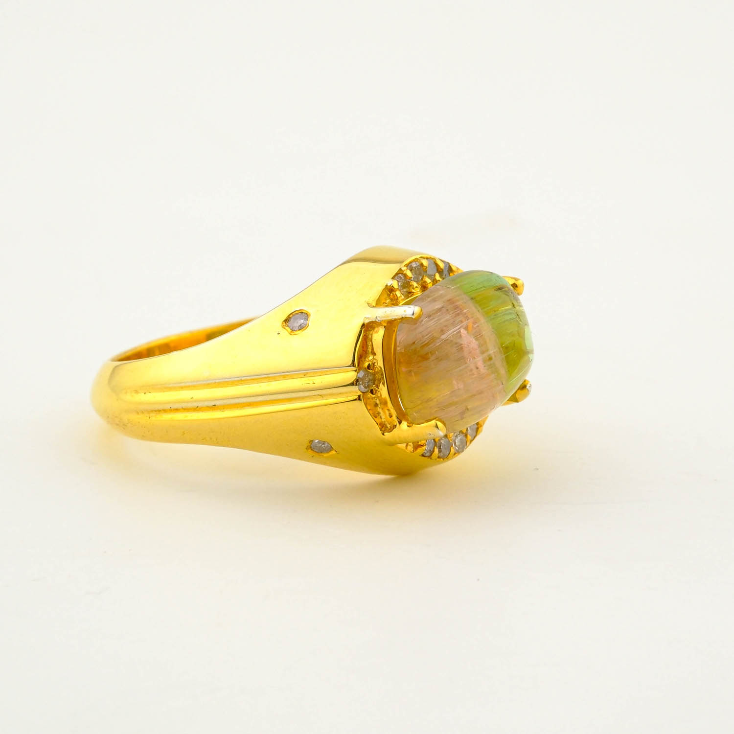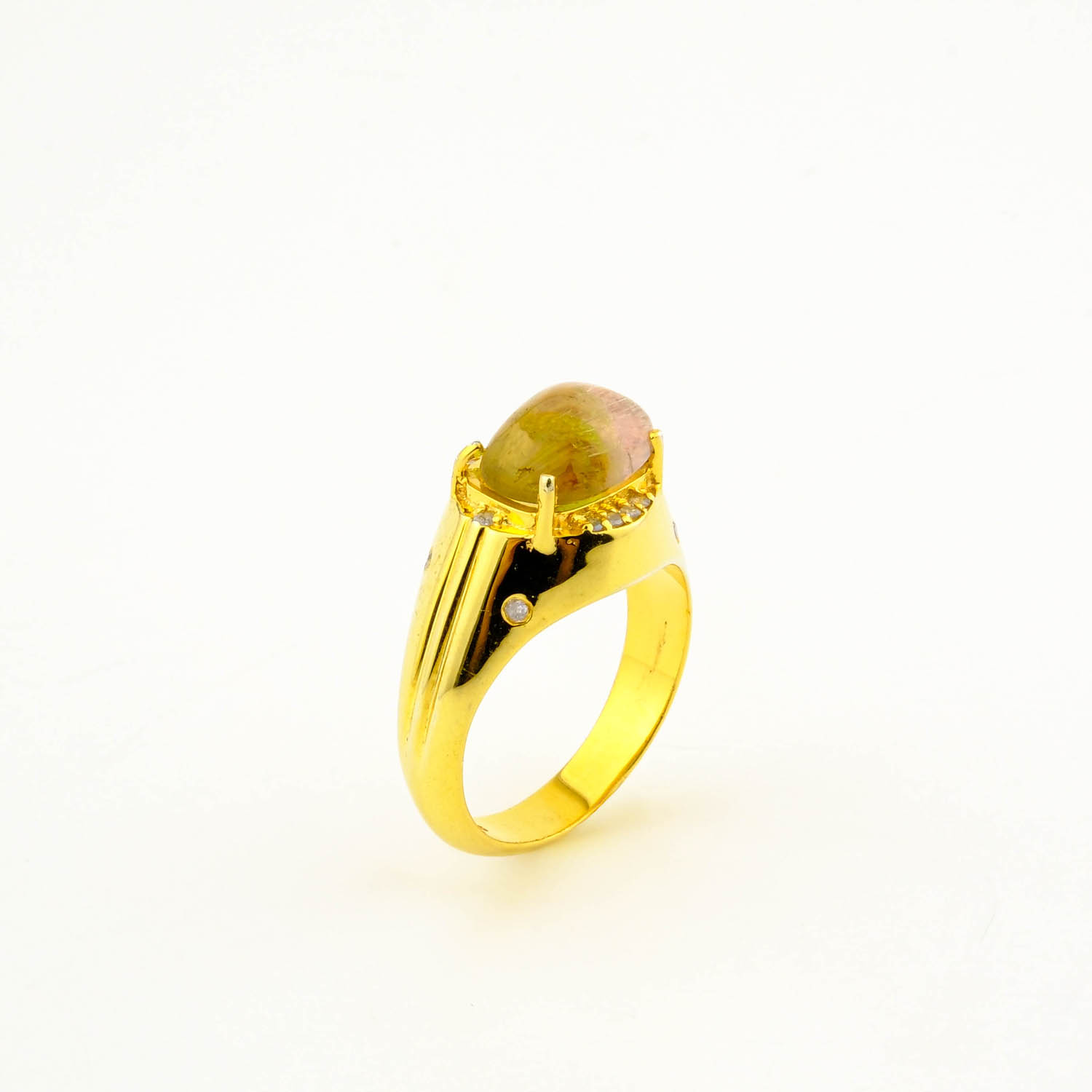 Orijinal Karpuz Turmalin Taşı Pırlanta Süslemeli 925 Ayar Gümüş Gold Kaplama Yüzük