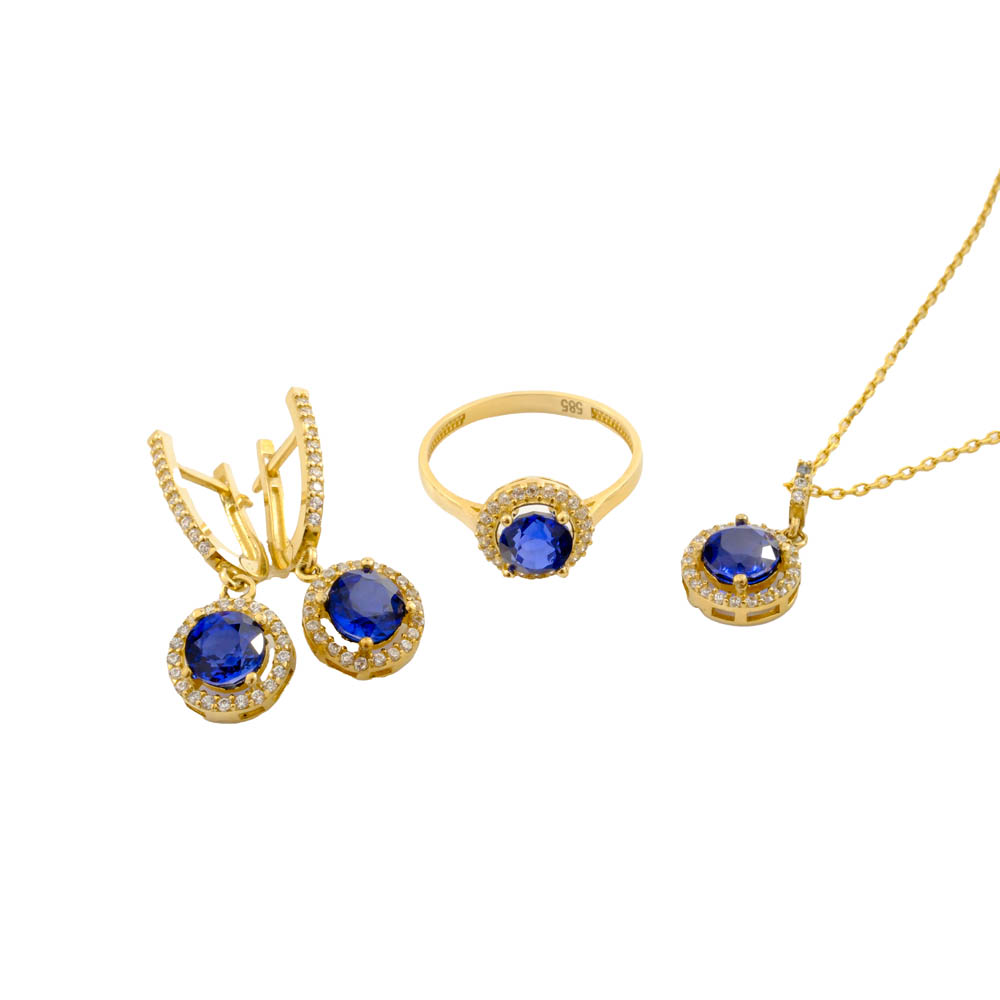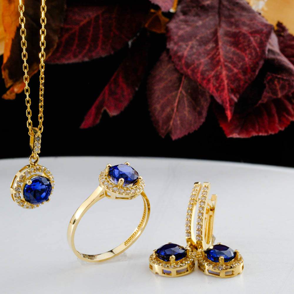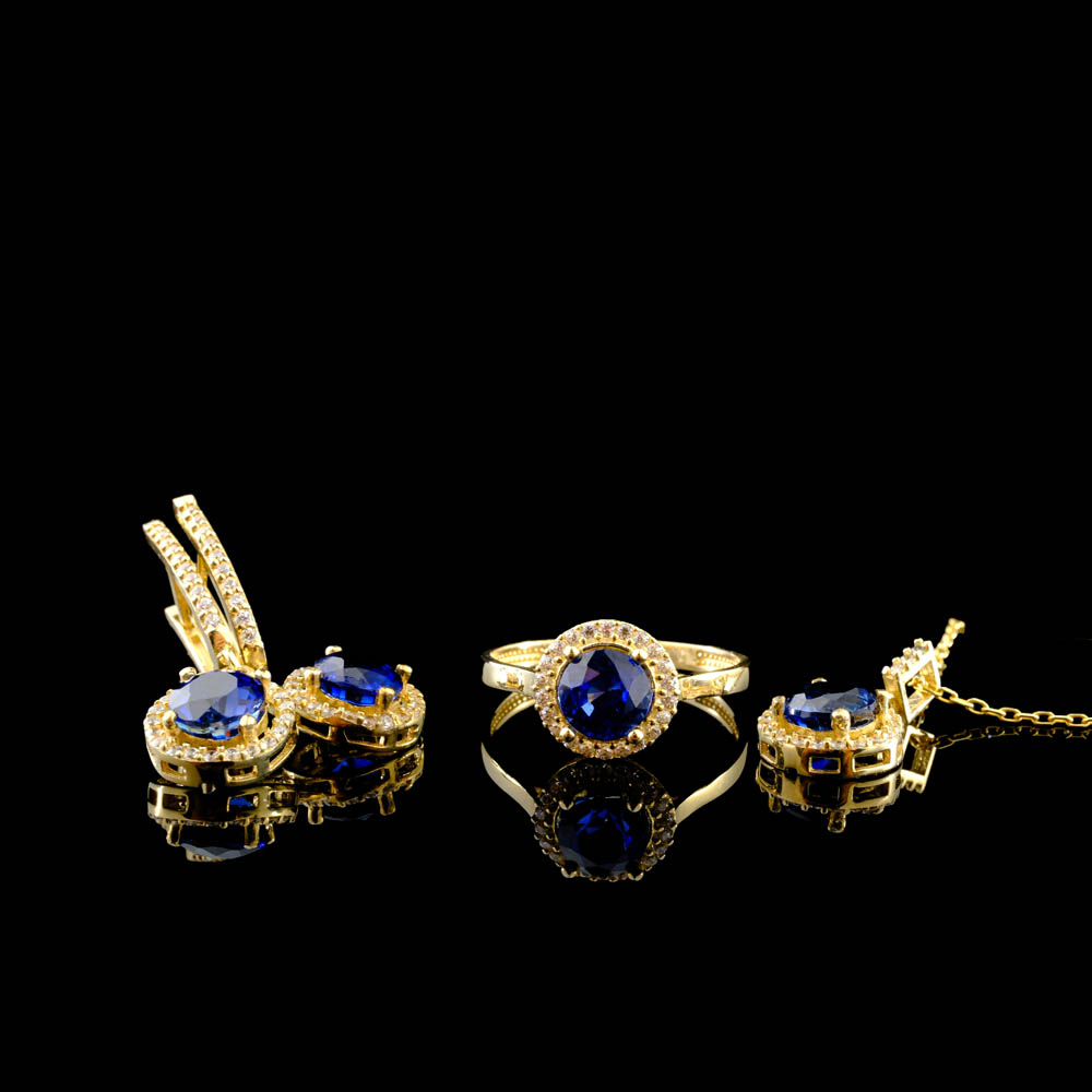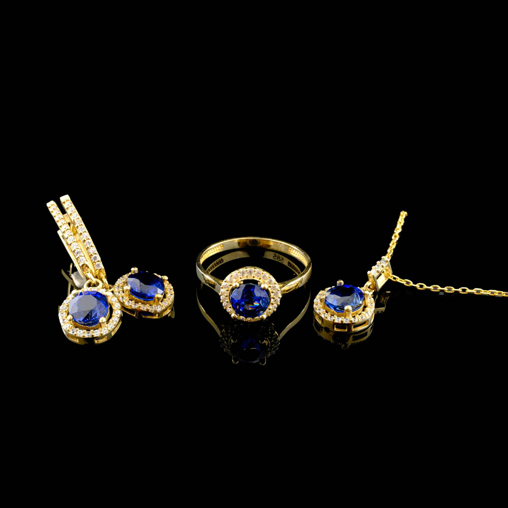 Zültanit Taşlı 925 Ayar Gümüş Gold Kaplama Bayan Set