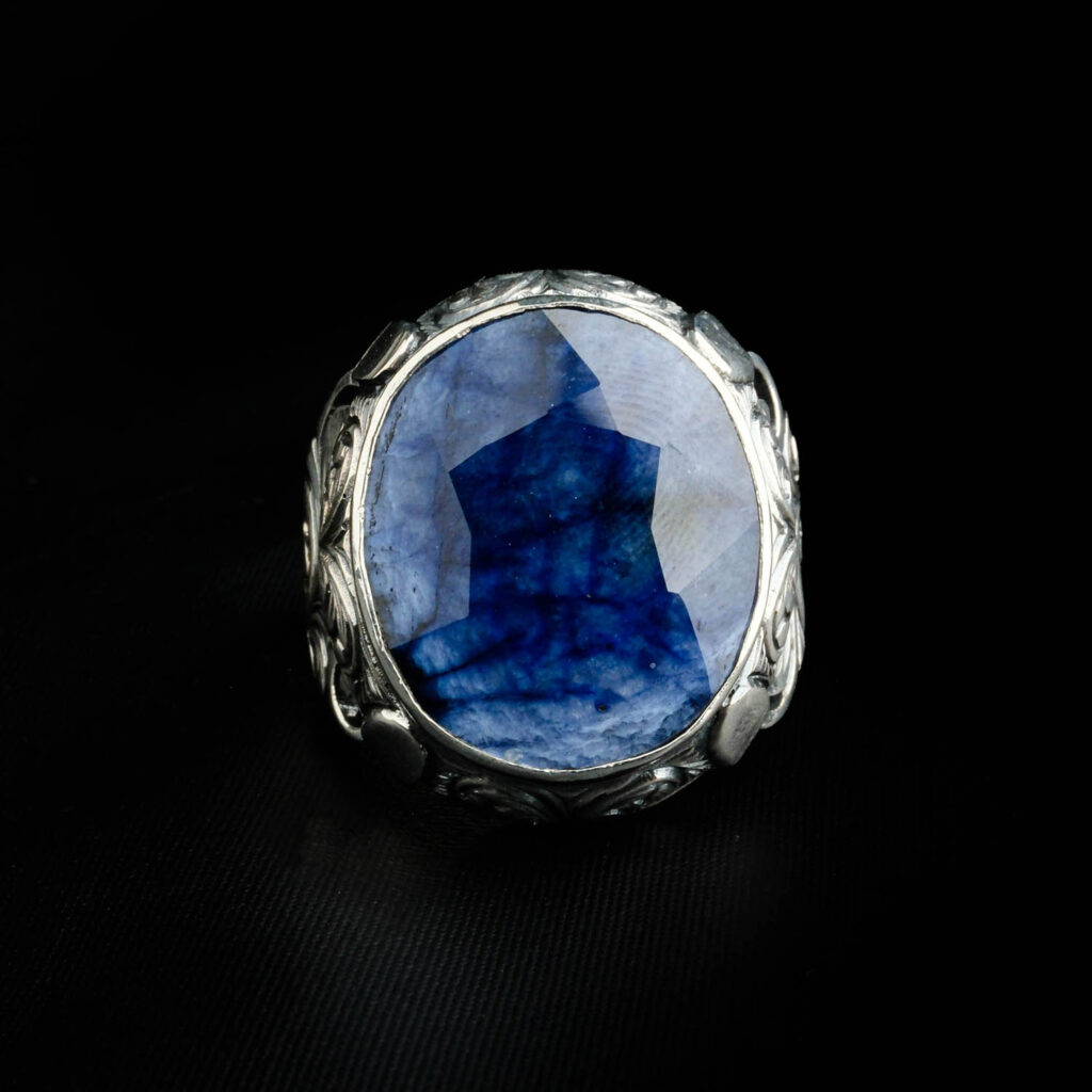 Özel Kalem İşçiliği Orijinal Safir Taşı 925 Ayar Gümüş Yüzük