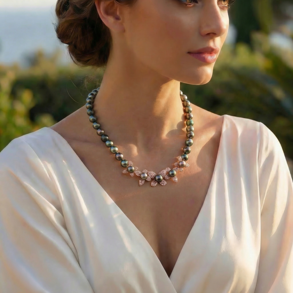 Özel Tasarım Orijinal Tahiti İnci 925 Ayar Gümüş Tasarım Gerdanlık...