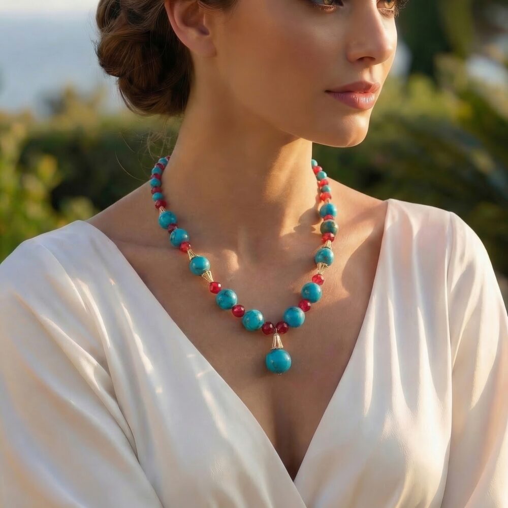 Özel Tasarım Orijinal Turkuaz ve Yakut Doğal Taş 925 Ayar...