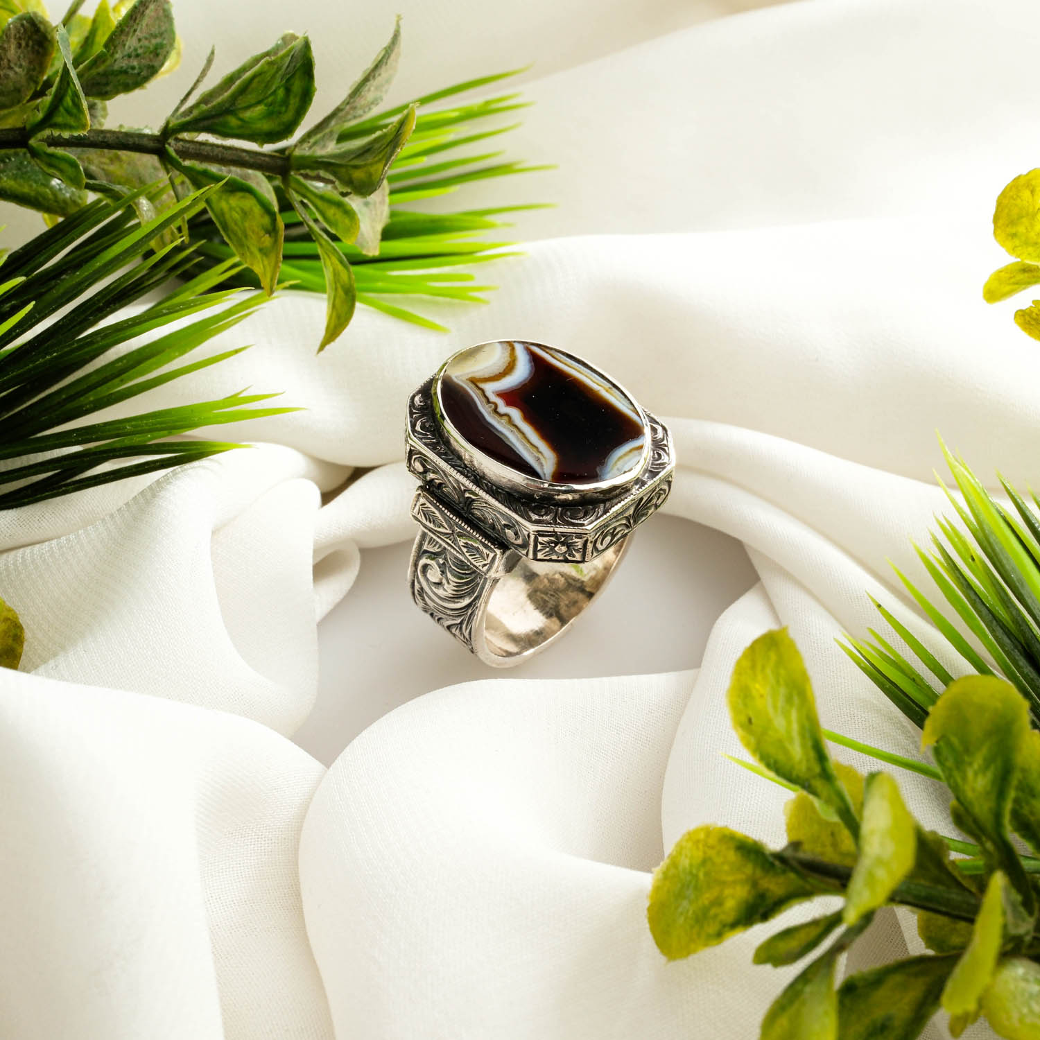 Orijinal Yemen Akik Taşı 925 Ayar Gümüş Tasarım El İşçiliği Erkek Yüzük