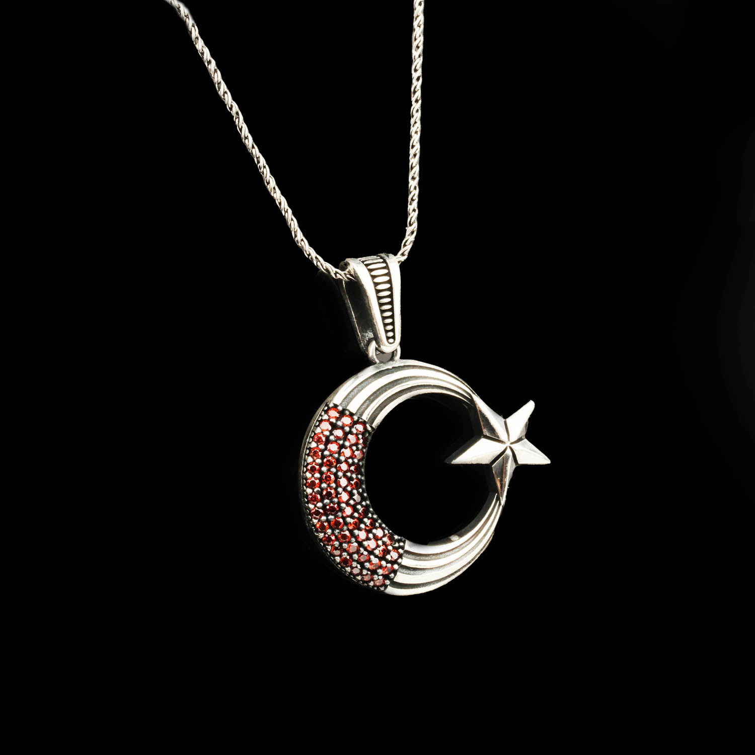Bu kolyenin üzerinde bulunan Türk bayrağı sembolü, milli duygularınızı ve vatan sevdanızı taşır. Gümüşün parlaklığı ve taşların ışıltısı, kolyeye benzersiz bir güzellik katmaktadır. Hem özel günlerde hem de günlük yaşamınızda kullanabileceğiniz bu aksesuar, stilinizi tamamlayacak.
