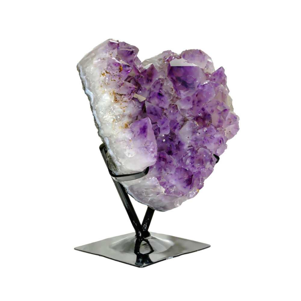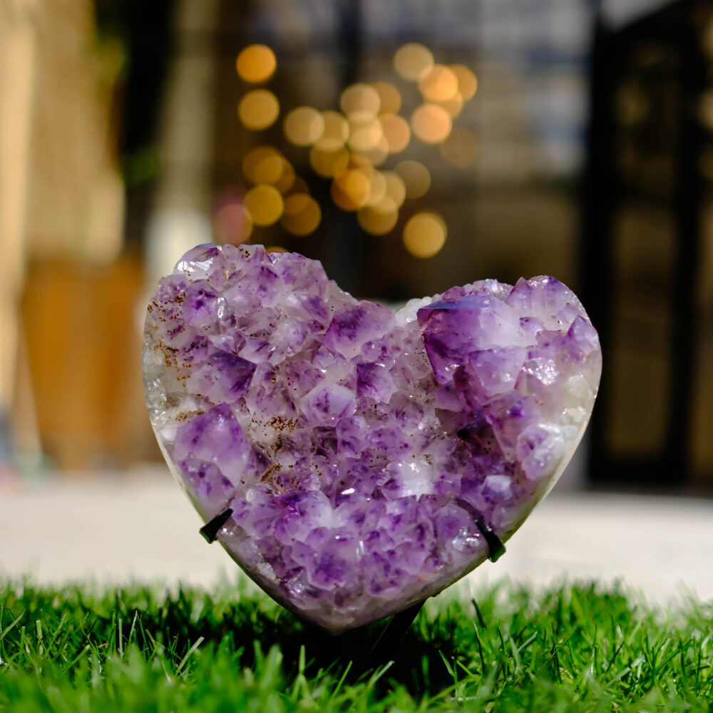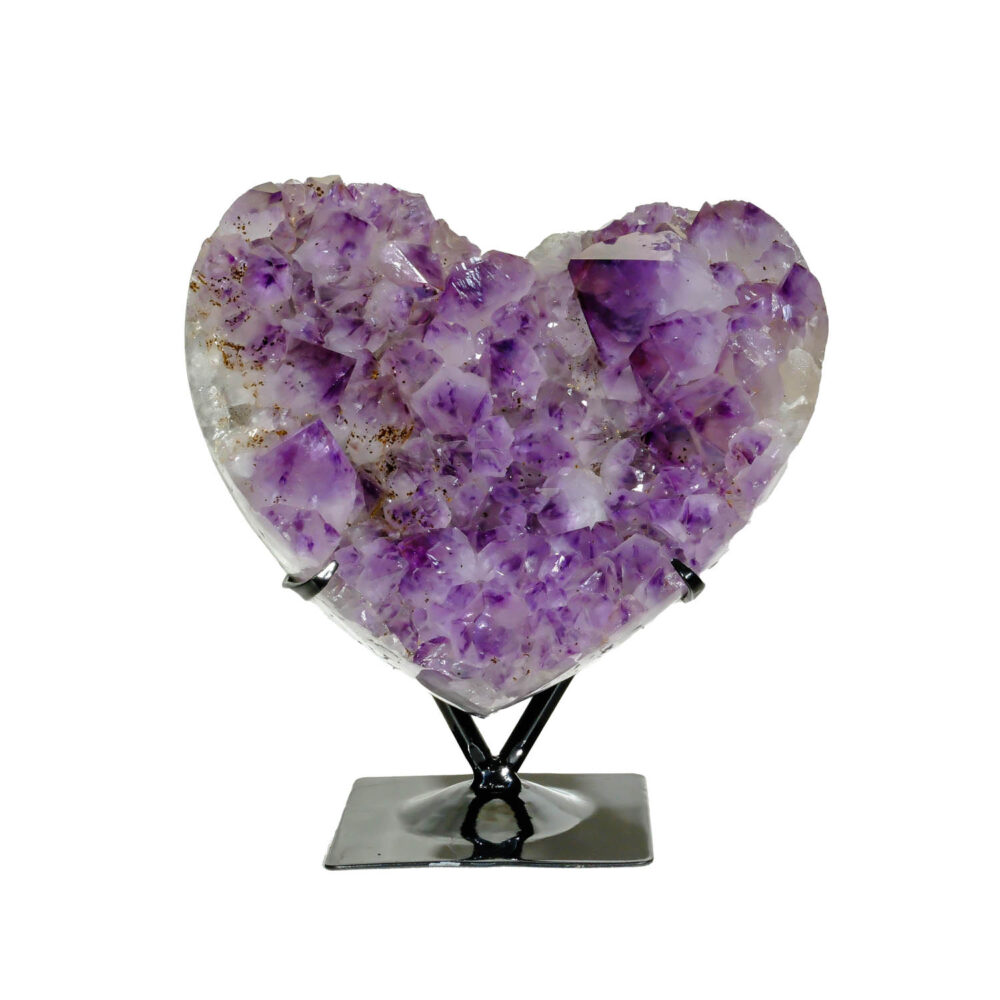 Özel Standlı Kalp Model Ametist Doğal Taş Ham Parça