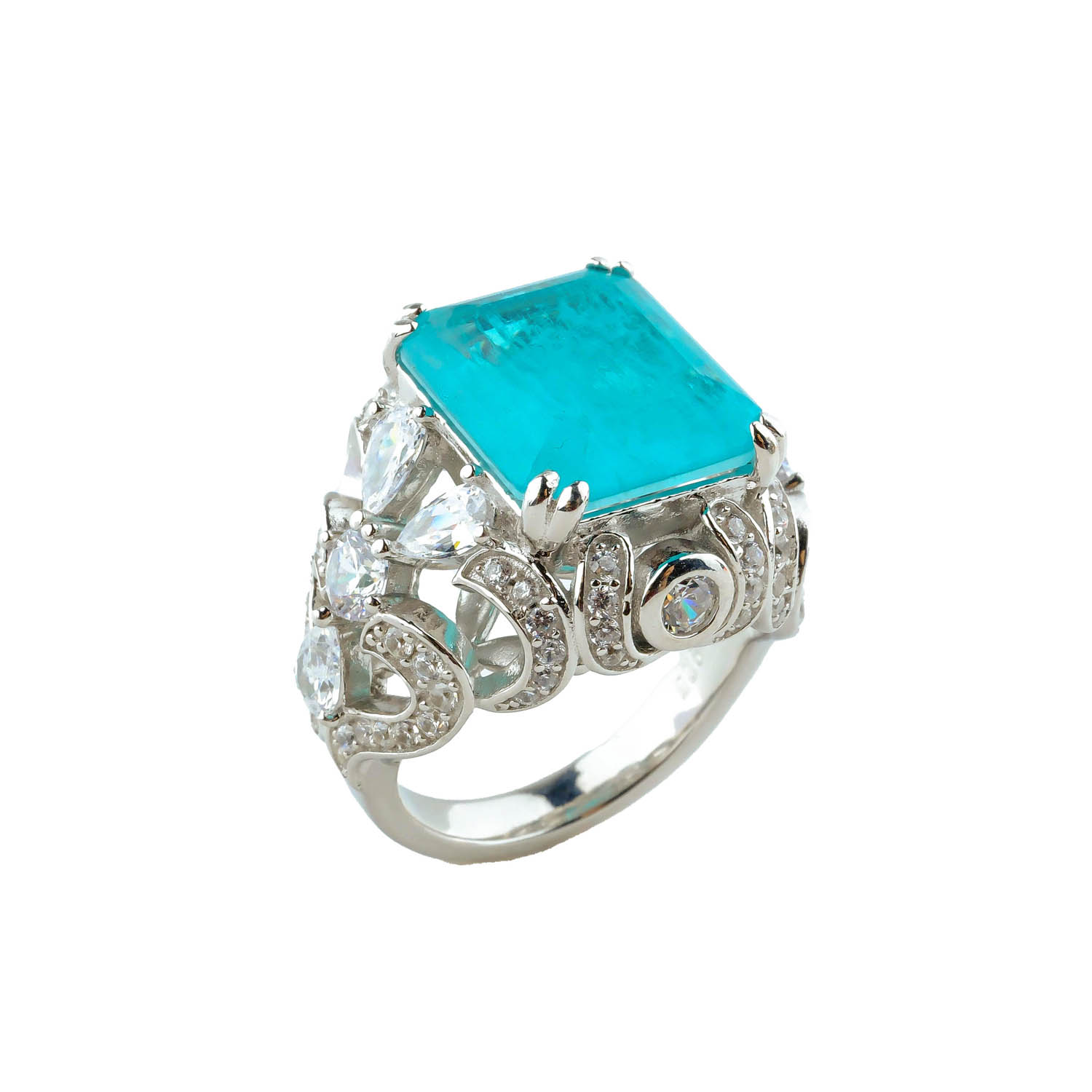 Paraiba Turmalin Doğal Taş Gümüş Bayan Yüzük (Laboratuvar İşlemli)