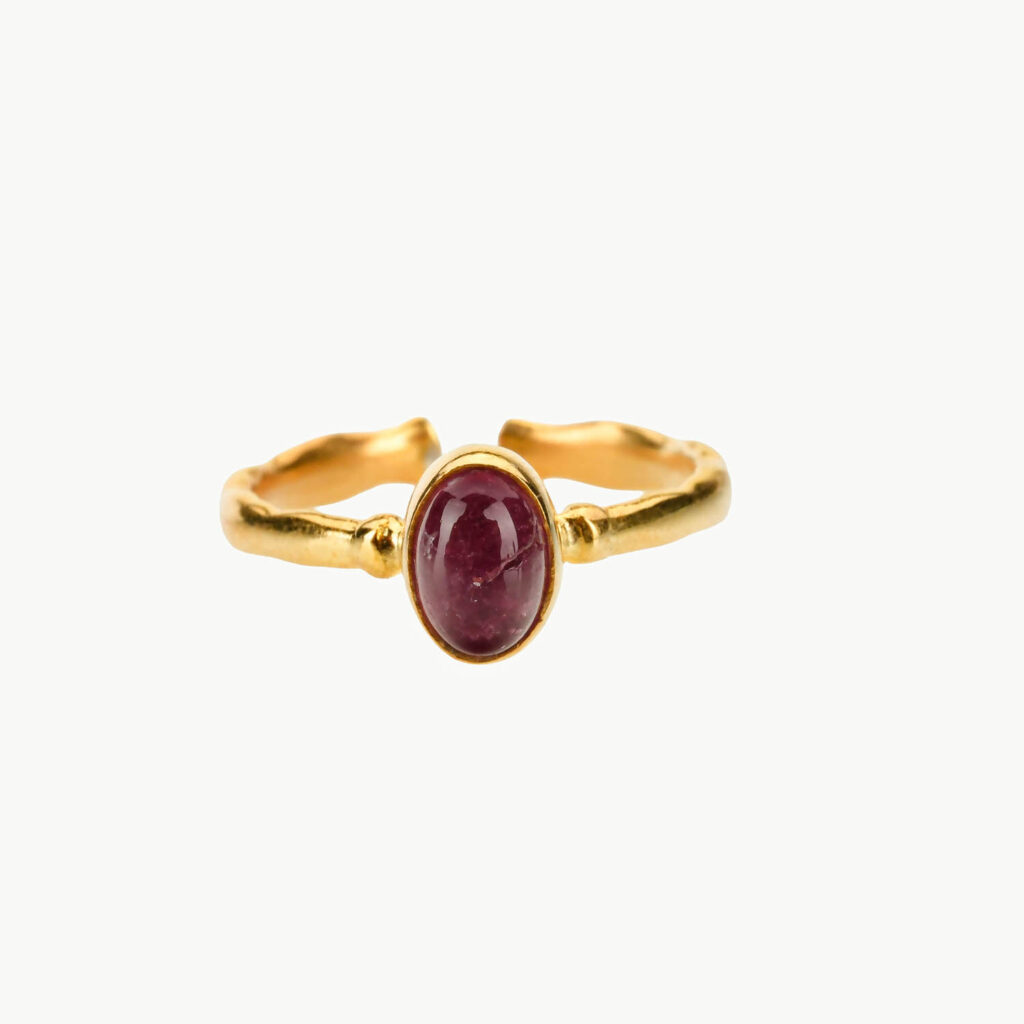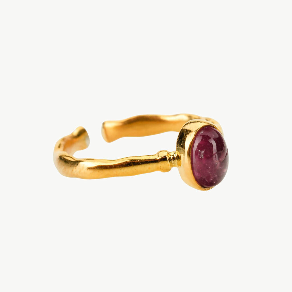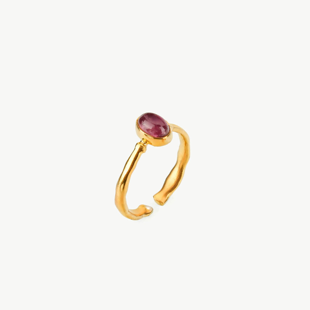 Pembe Turmalin Taşı Gold Kaplama 925 Ayar Gümüş Yüzük
