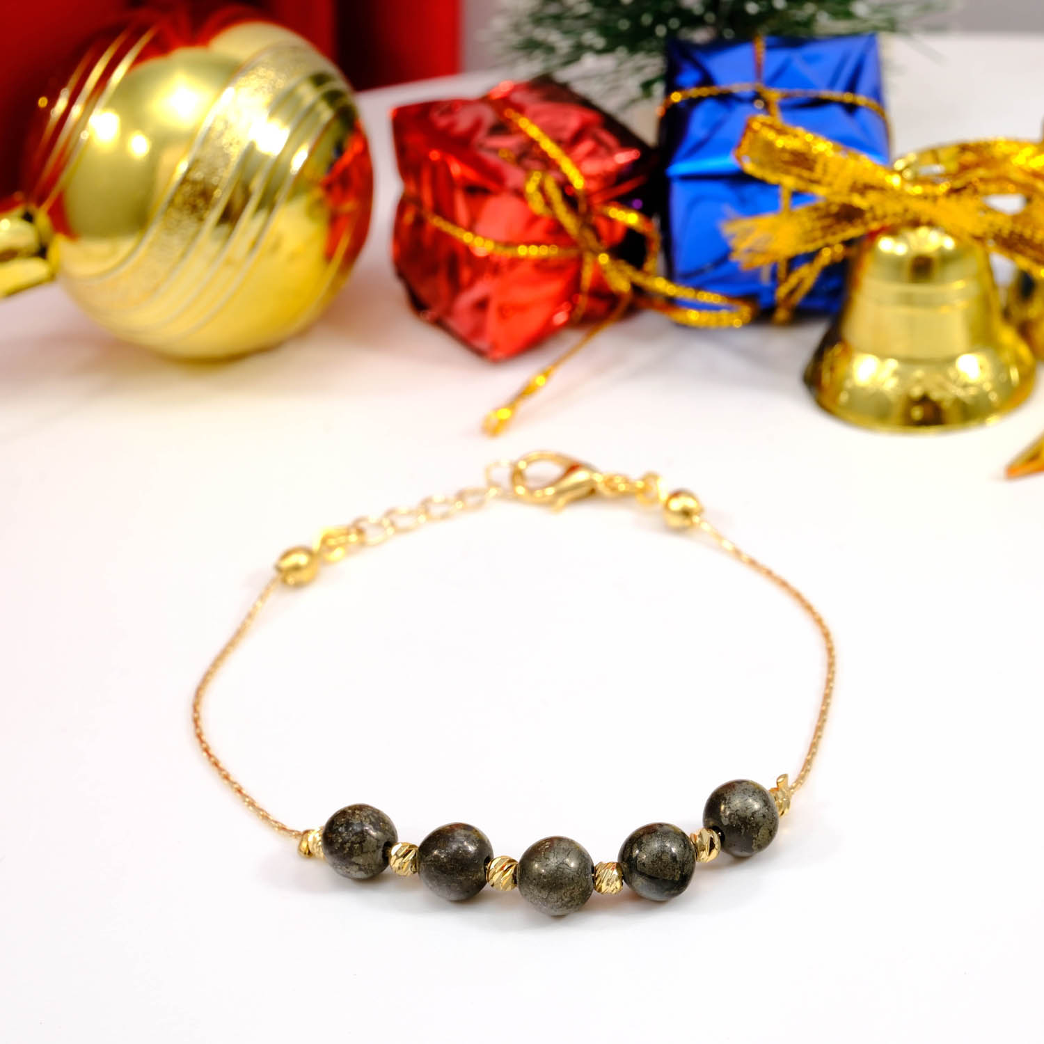 Pirit taşı ile yapılmış çelik bileklik modelimiz.