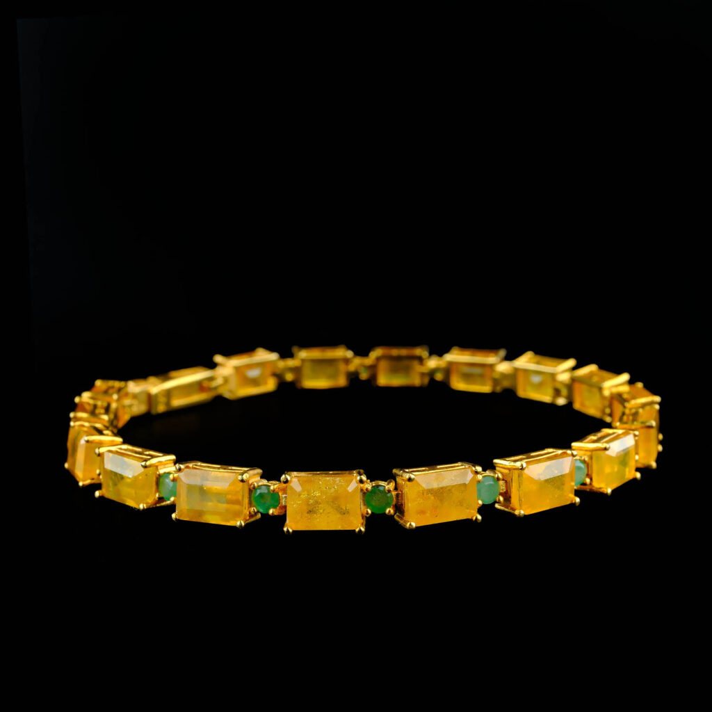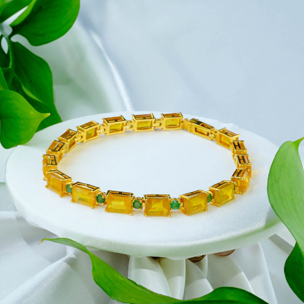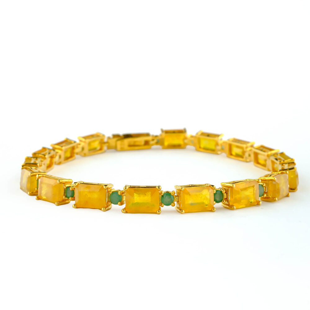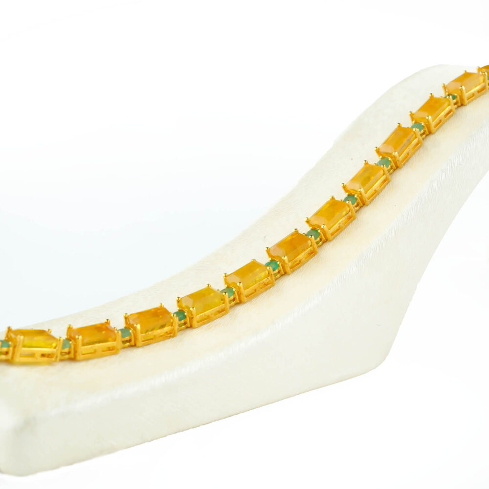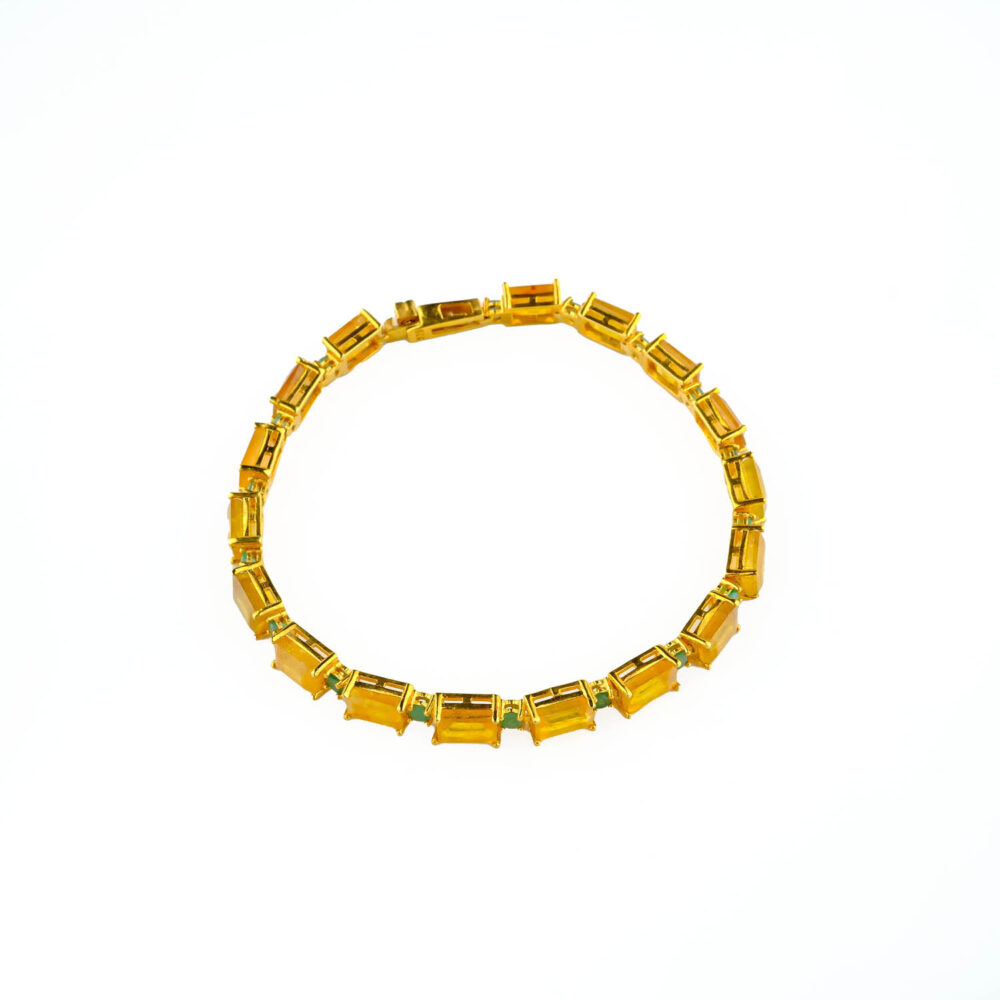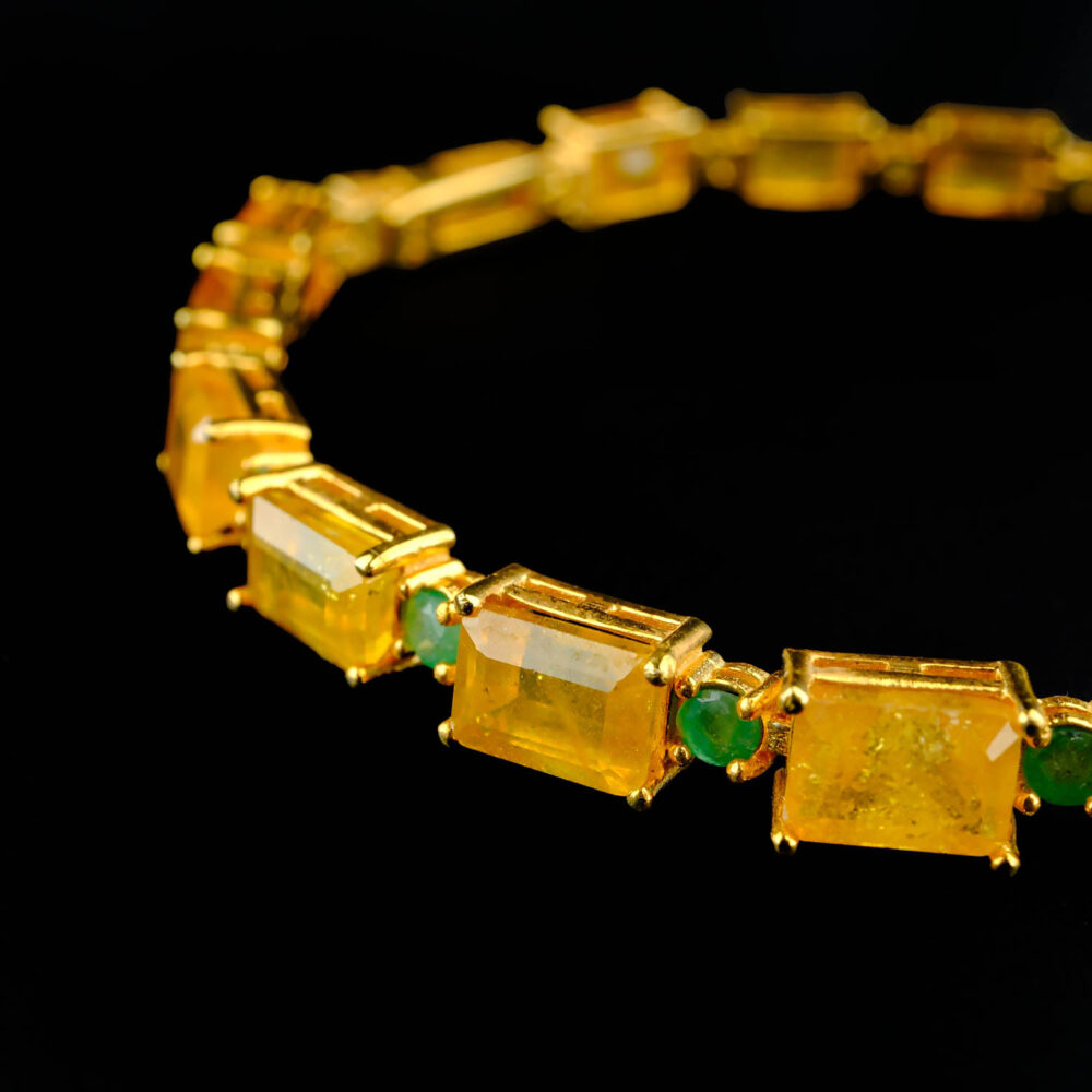 Sarı Safir ve Zümrüt taşı 925 ayar gümüş tasarımlı bayan bileklik modelimiz.