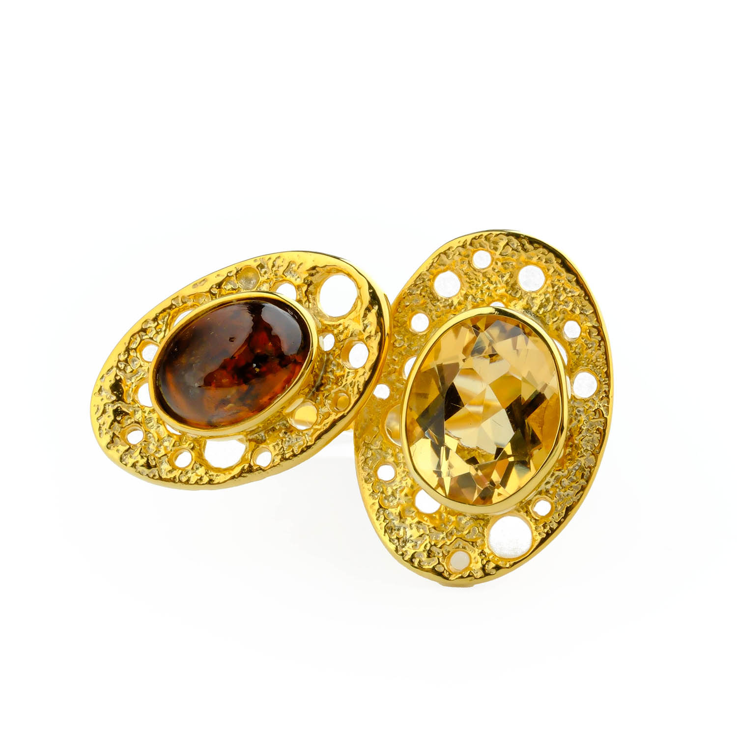 Turmalin ve Sitrin taşı 925 ayar gümüş tasarımlı bayan yüzük modelimiz.