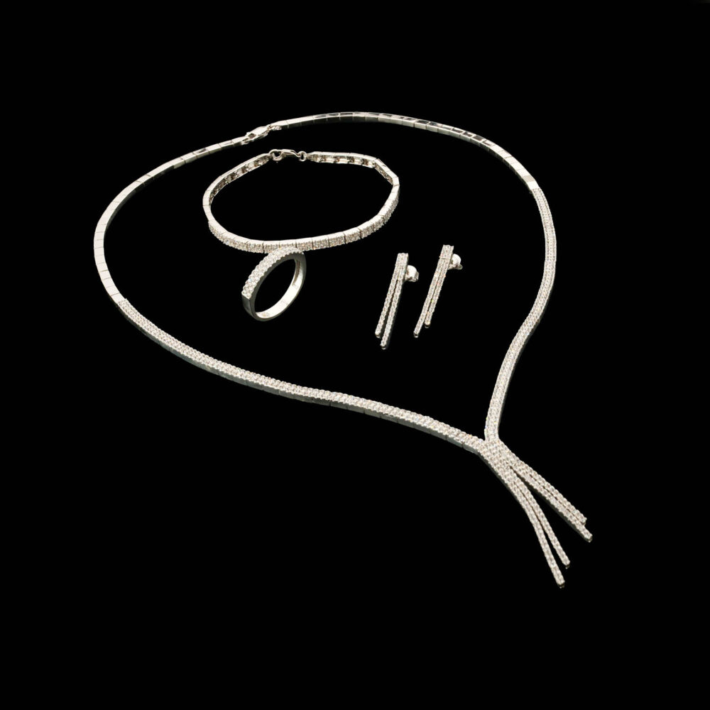 Su yolu 925 ayar gümüş bayan kolye, bileklik, yüzük ve küpeden oluşan setimiz.