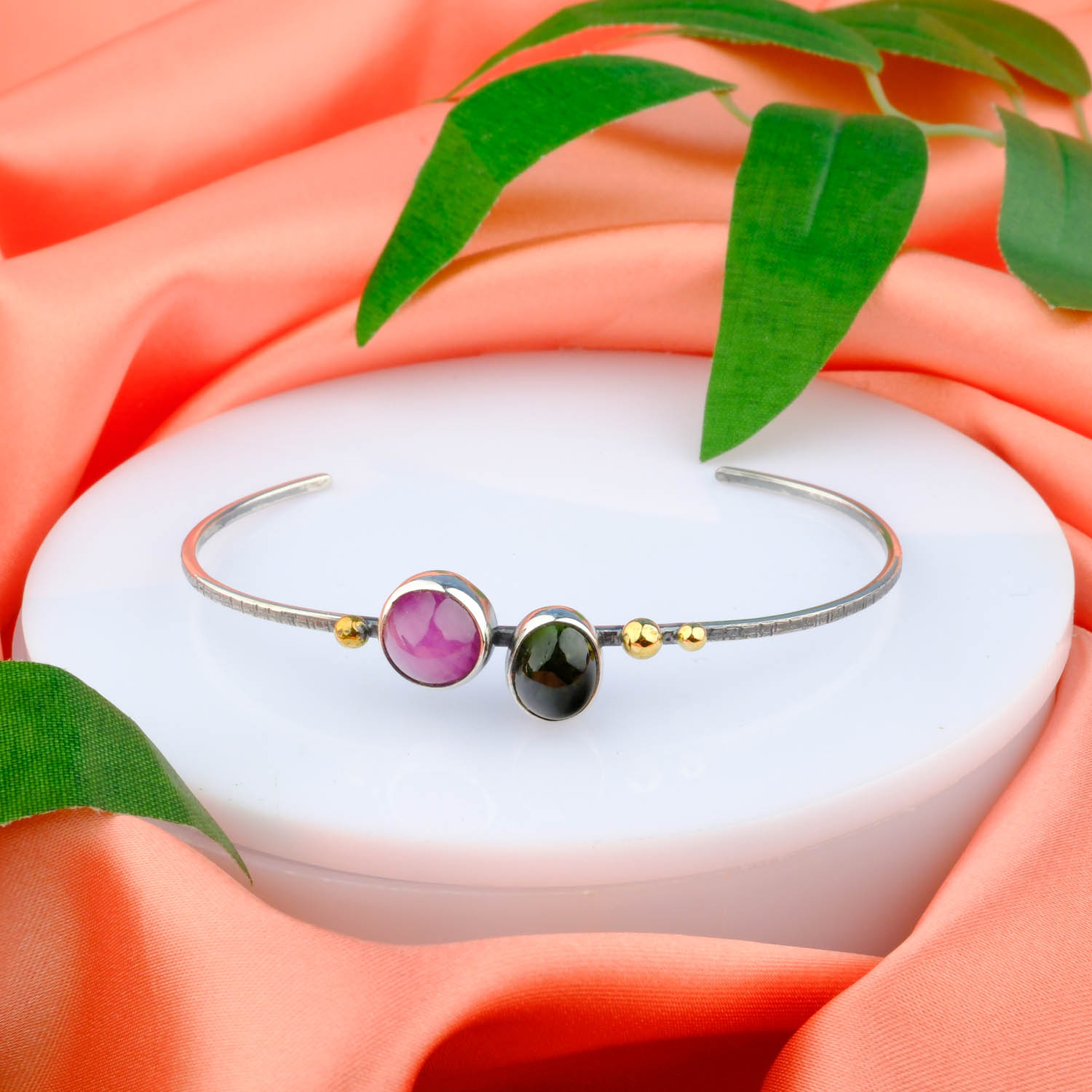 El yapımı Yakut ve Turmalin taşı ile yapılmış 925 ayar gümüş bayan bileklik modelimiz.