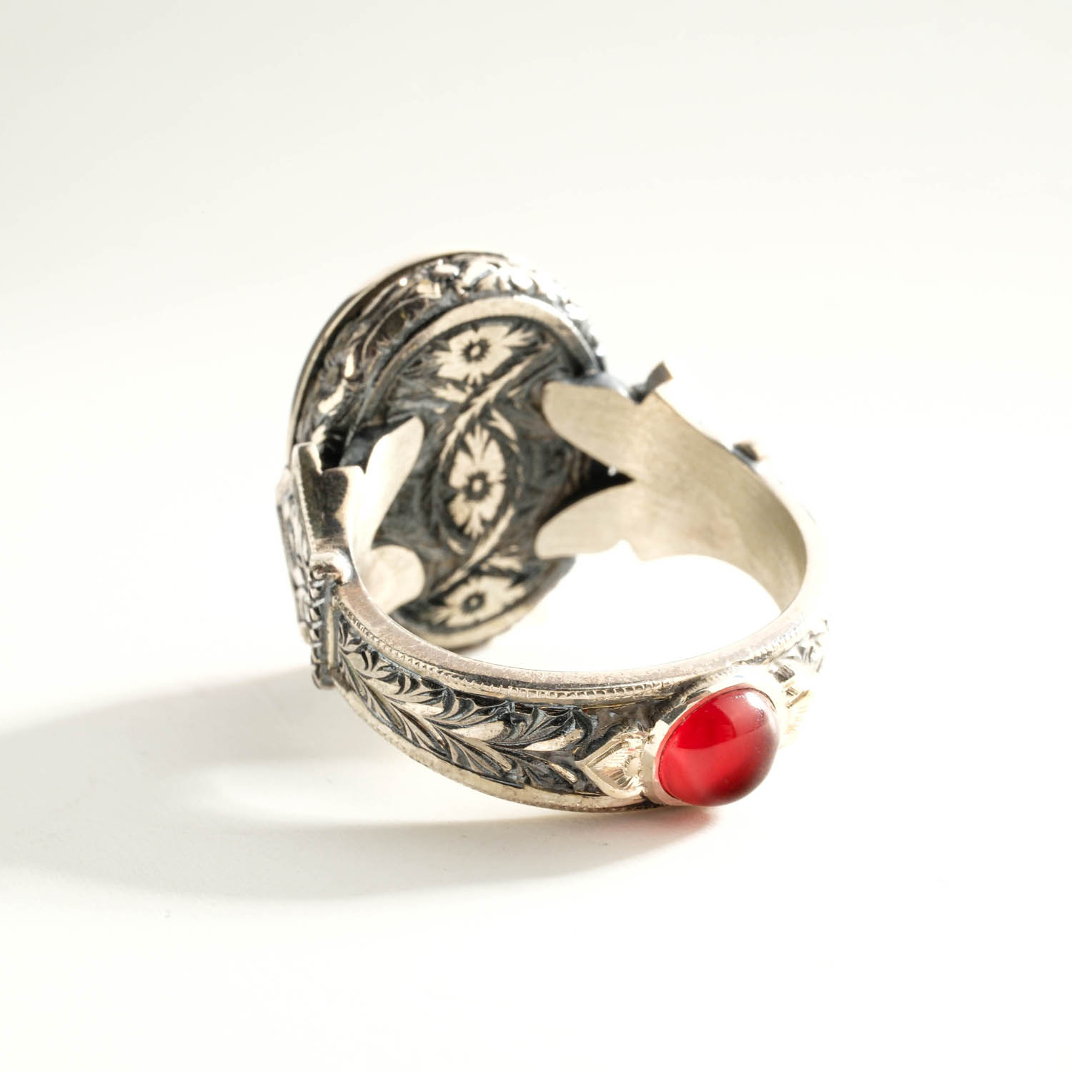 Yemen Akik Taşı 925 Ayar Gümüş Tasarım El İşçiliği Erkek Yüzük